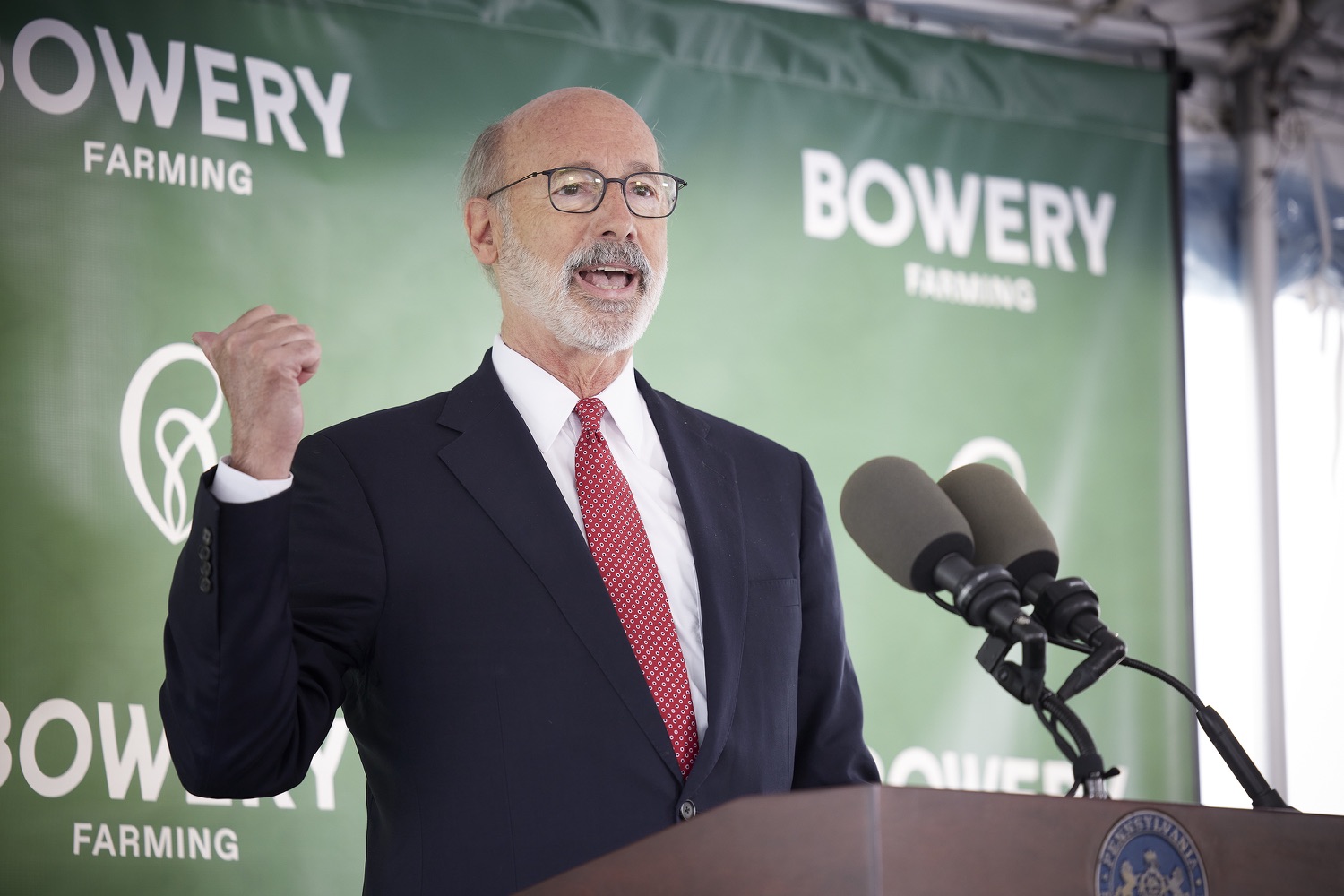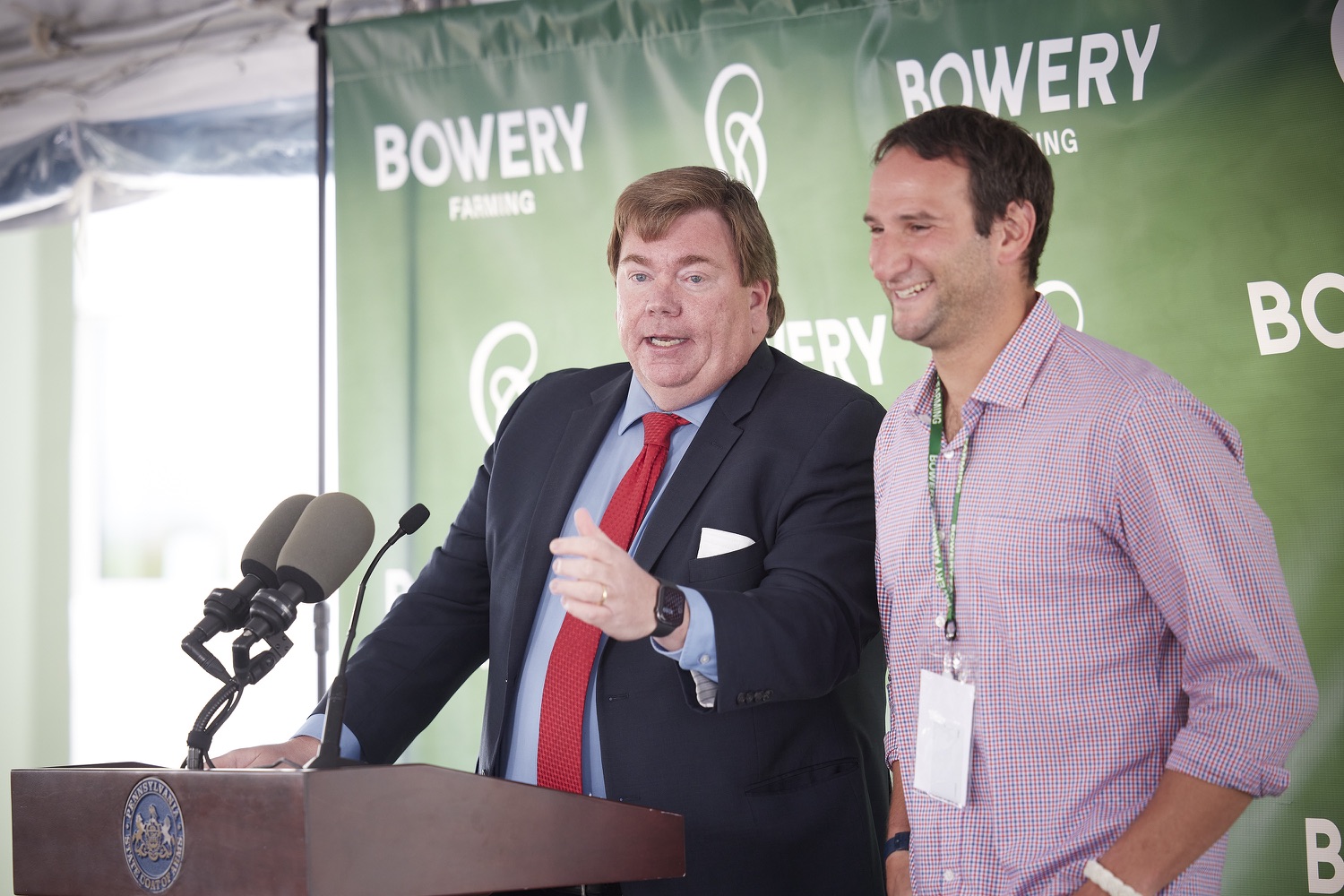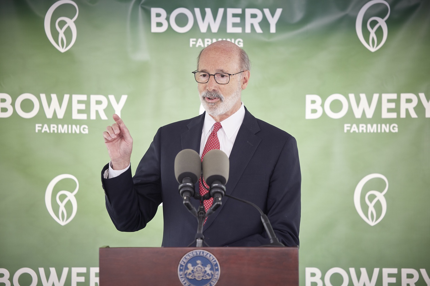 Governor Tom Wolf and Agriculture Secretary Russell Redding today toured Bowery Farming's newest vertical farm in Bethlehem and highlighted the governor's investment in the new farm that will create at least 70 good paying jobs and help feed the 50 million people within a 200-mile radius of the farm."My investment in Bowery Farming supports economic revitalization for Bethlehem, creates jobs, and improves food security," said Governor Wolf. "Pennsylvania's agriculture industry is well known for its innovation, and Bowery will help us to continue charting a path for a sustainable, food-secure future."Bowery Farming is the largest vertical farming company in the United States. The new farm in Bethlehem, Pennsylvania is its largest, most technologically advanced and sustainable farm. The Governor's Action Team worked with Bowery to set roots for its first Pennsylvania farm in the Lehigh Valley. Bowery received a funding proposal from the Department of Community and Economic Development for a $210,000 Pennsylvania First grant and a $250,000 Enterprise Zone Tax Credit through the Neighborhood Assistance Program. With this support, Bowery has constructed a 150,000 square-foot facility on 8.7 acres that will create and retain at least 70 new, full-time jobs over the next three years. The company has pledged to invest more than $30 million in this project.List of Speakers:Irving Fain, CEO Bowery FarmingGovernor Tom WolfJ. William Reynolds, Mayor of BethlehemShefali Mehta, PhD, USDA Deputy Under Secretary for ResearchLamont McClure, Northampton County Executive