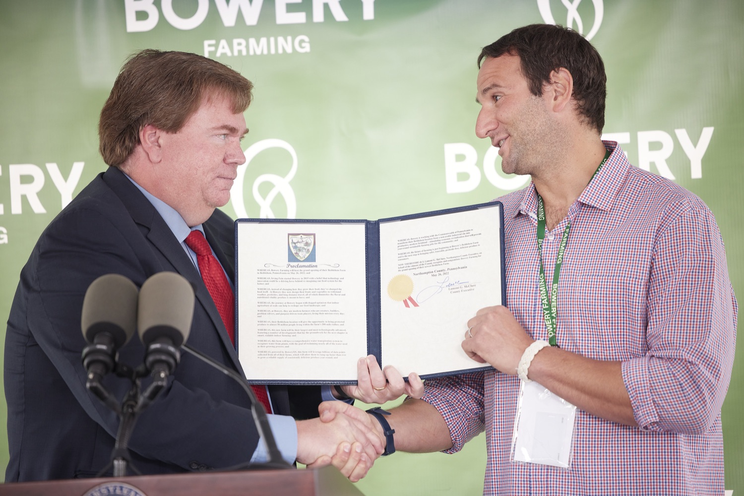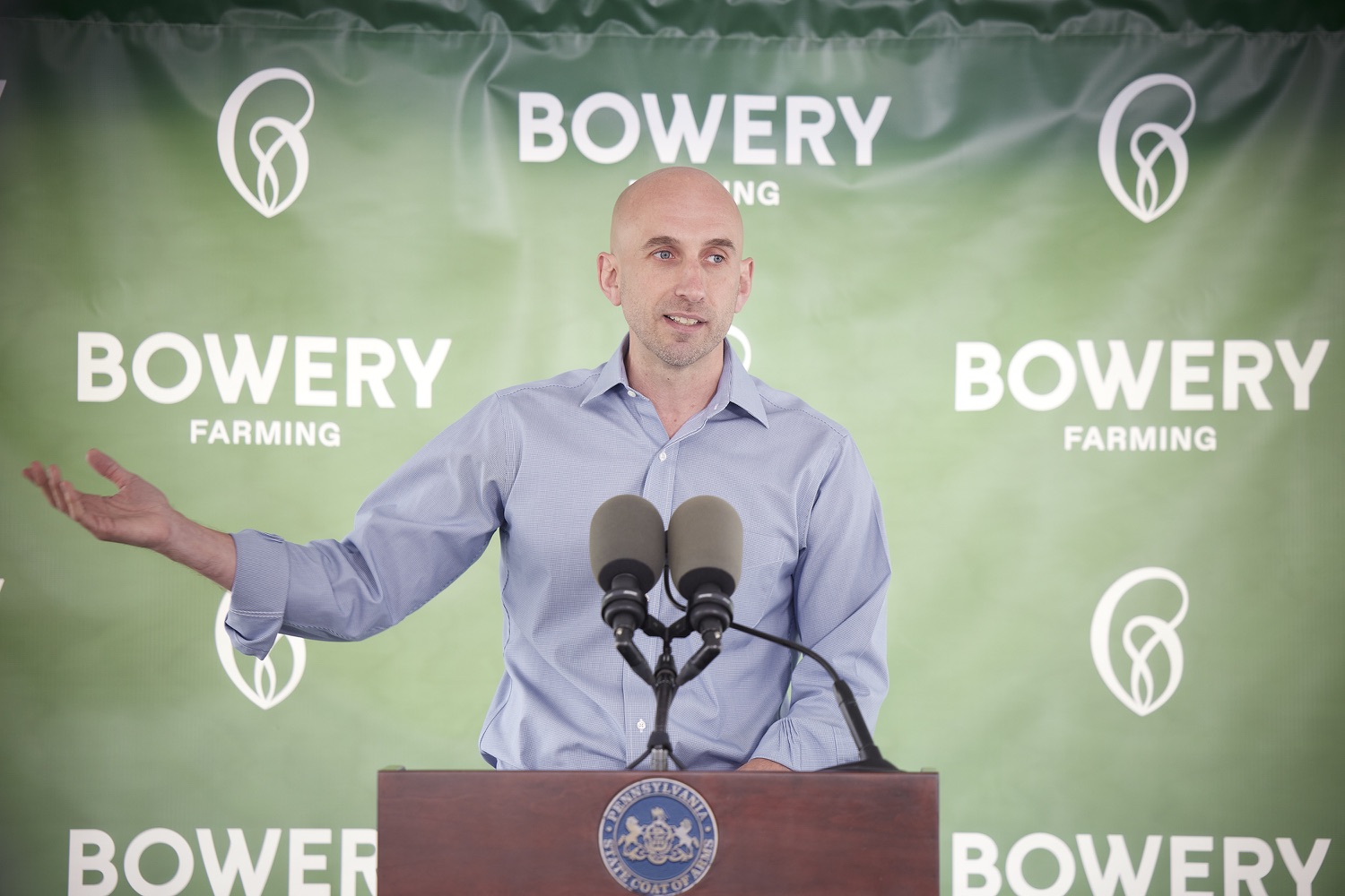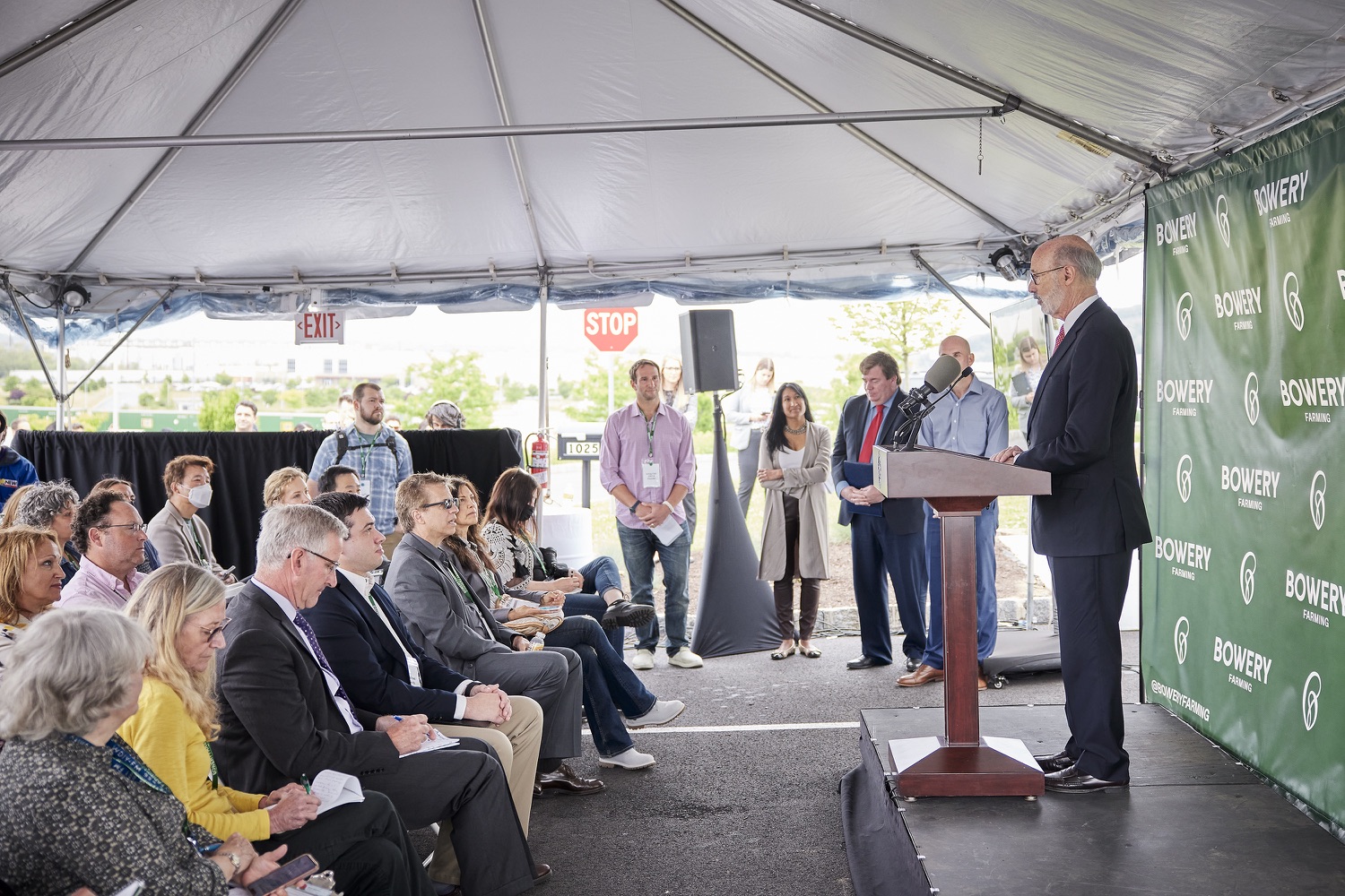 Governor Tom Wolf and Agriculture Secretary Russell Redding today toured Bowery Farming's newest vertical farm in Bethlehem and highlighted the governor's investment in the new farm that will create at least 70 good paying jobs and help feed the 50 million people within a 200-mile radius of the farm."My investment in Bowery Farming supports economic revitalization for Bethlehem, creates jobs, and improves food security," said Governor Wolf. "Pennsylvania's agriculture industry is well known for its innovation, and Bowery will help us to continue charting a path for a sustainable, food-secure future."Bowery Farming is the largest vertical farming company in the United States. The new farm in Bethlehem, Pennsylvania is its largest, most technologically advanced and sustainable farm. The Governor's Action Team worked with Bowery to set roots for its first Pennsylvania farm in the Lehigh Valley. Bowery received a funding proposal from the Department of Community and Economic Development for a $210,000 Pennsylvania First grant and a $250,000 Enterprise Zone Tax Credit through the Neighborhood Assistance Program. With this support, Bowery has constructed a 150,000 square-foot facility on 8.7 acres that will create and retain at least 70 new, full-time jobs over the next three years. The company has pledged to invest more than $30 million in this project.List of Speakers:Irving Fain, CEO Bowery FarmingGovernor Tom WolfJ. William Reynolds, Mayor of BethlehemShefali Mehta, PhD, USDA Deputy Under Secretary for ResearchLamont McClure, Northampton County Executive