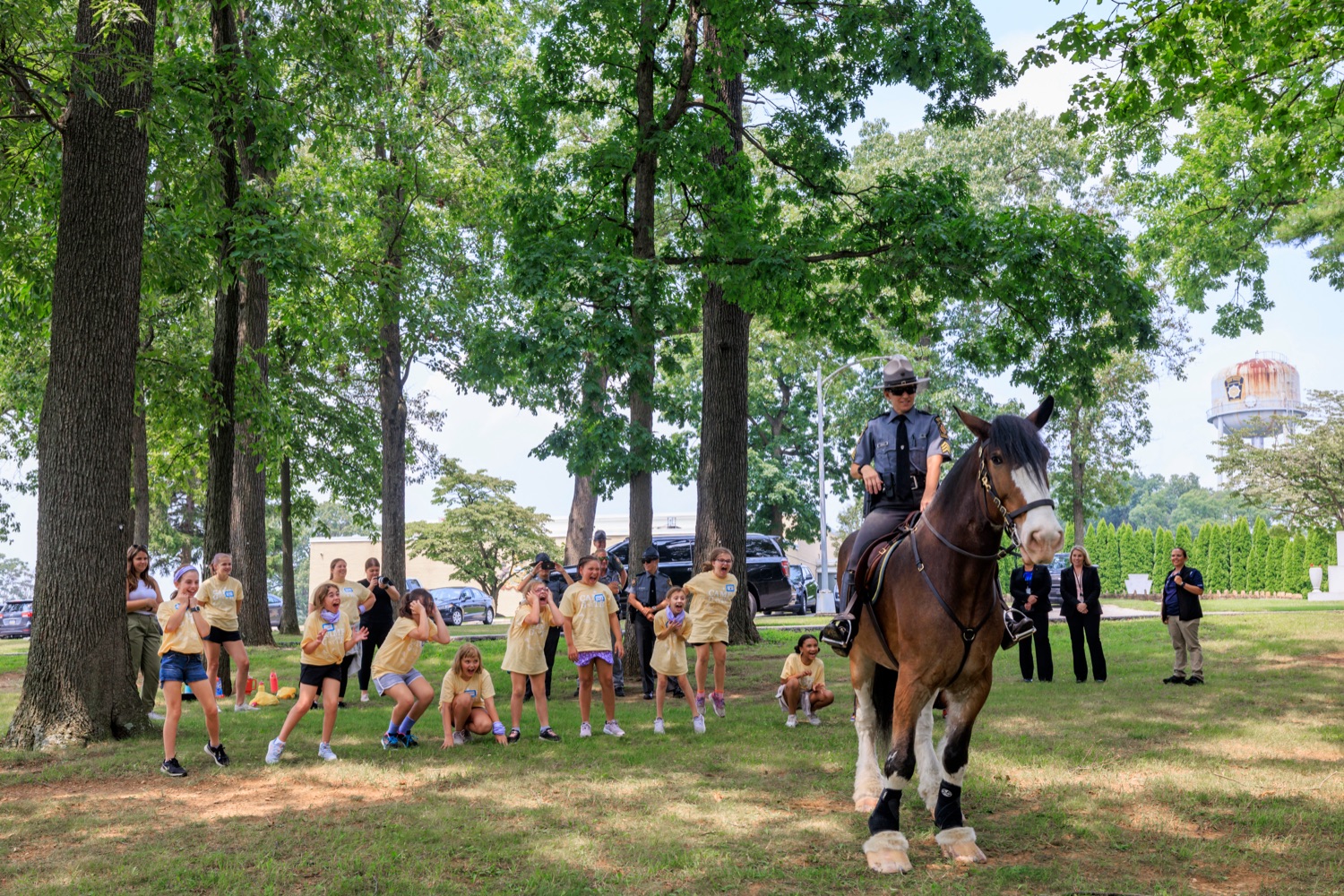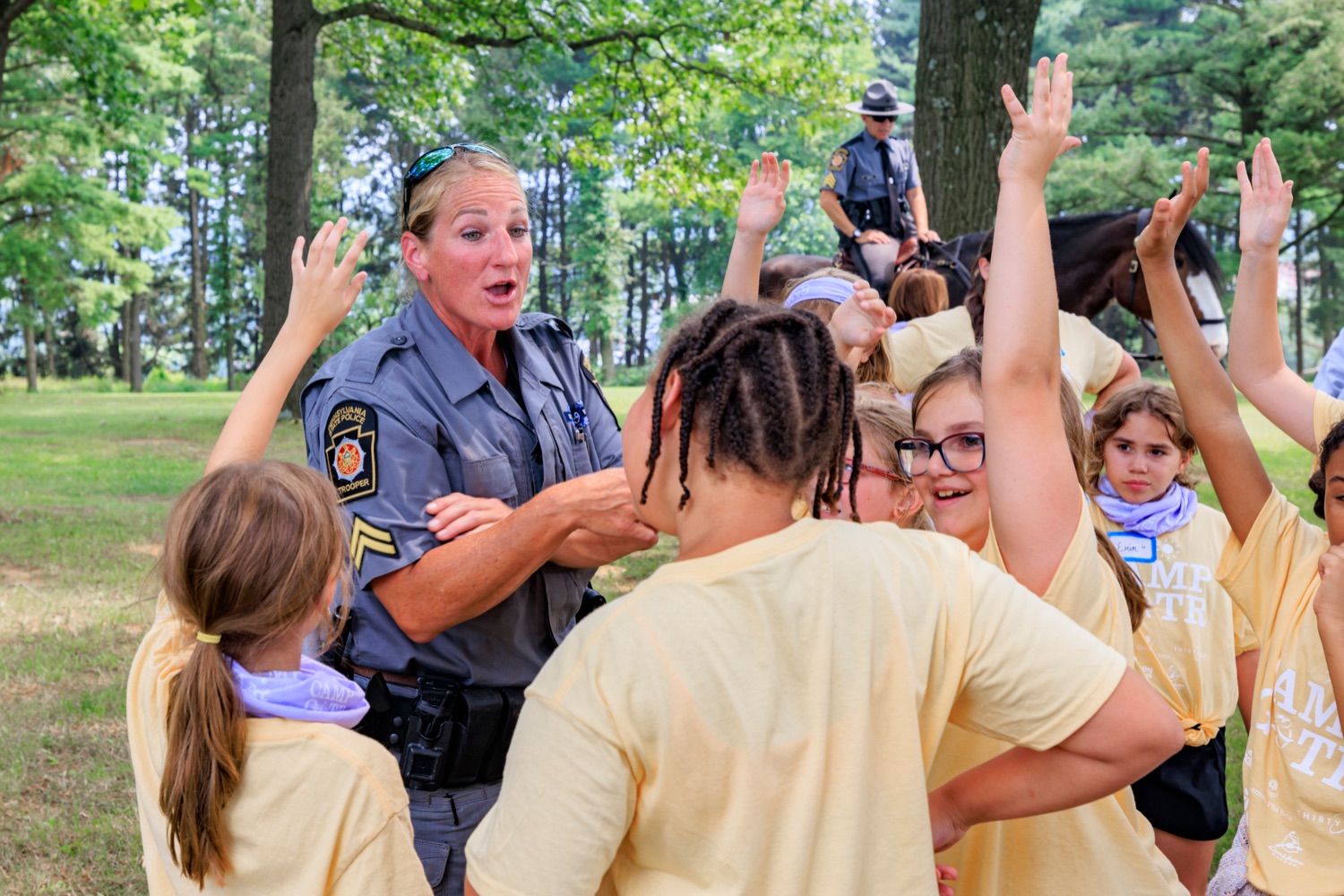 First Lady Lori Shapiro joined the Pennsylvania State Police (PSP) for an event aimed at helping girls build their confidence, creativity, and decision-making skills.PSP's Bureau of Training and Education hosted summer campers from a Girls on the Run program for a day of fun and learning at the Academy in Hershey.The event included a look at the Pennsylvania State Police Mounted and K9 units, an obstacle course, and a building entry and clearing drill. Thirty-six participants, all in grades 3 to 8, had an opportunity to interact with female troopers and the First Lady. At the event, the First Lady met a junior counselor who attended Girls on the Run as a camper and enjoyed her time with Girls on the Run so much - including her visit to PSP - that she decided to come back and volunteer as a teenager.