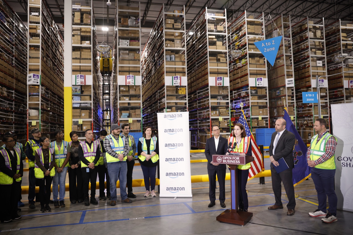 Amazon and Governor Josh Shapiro celebrated the opening of a brand new 1.2 million square foot fulfillment center in York. This new fulfillment center joins nearly 40 other Amazon operations facilities across the Commonwealth. Since 2010, Amazon has invested more than $21.6 billion in Pennsylvania, including infrastructure and compensation to employees, and has created more than 25,000 direct jobs here. Amazon has opened over 50 new fulfillment centers, delivery stations, and same-day delivery sites in the U.S. this year.List of Speakers:Steve Washenko - Site Lead, Amazon Maura Kennedy - Senior Manager for Economic Development, AmazonRick Siger - Secretary, Dept. of Community & Economic Development (DCED) Governor Josh Shapiro