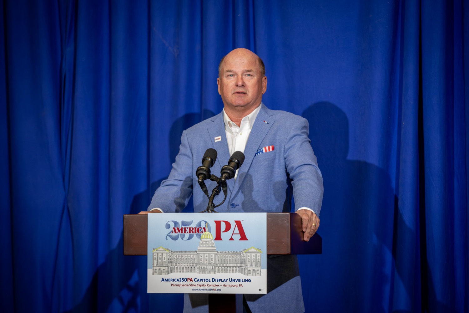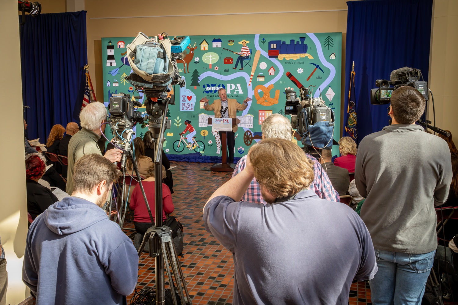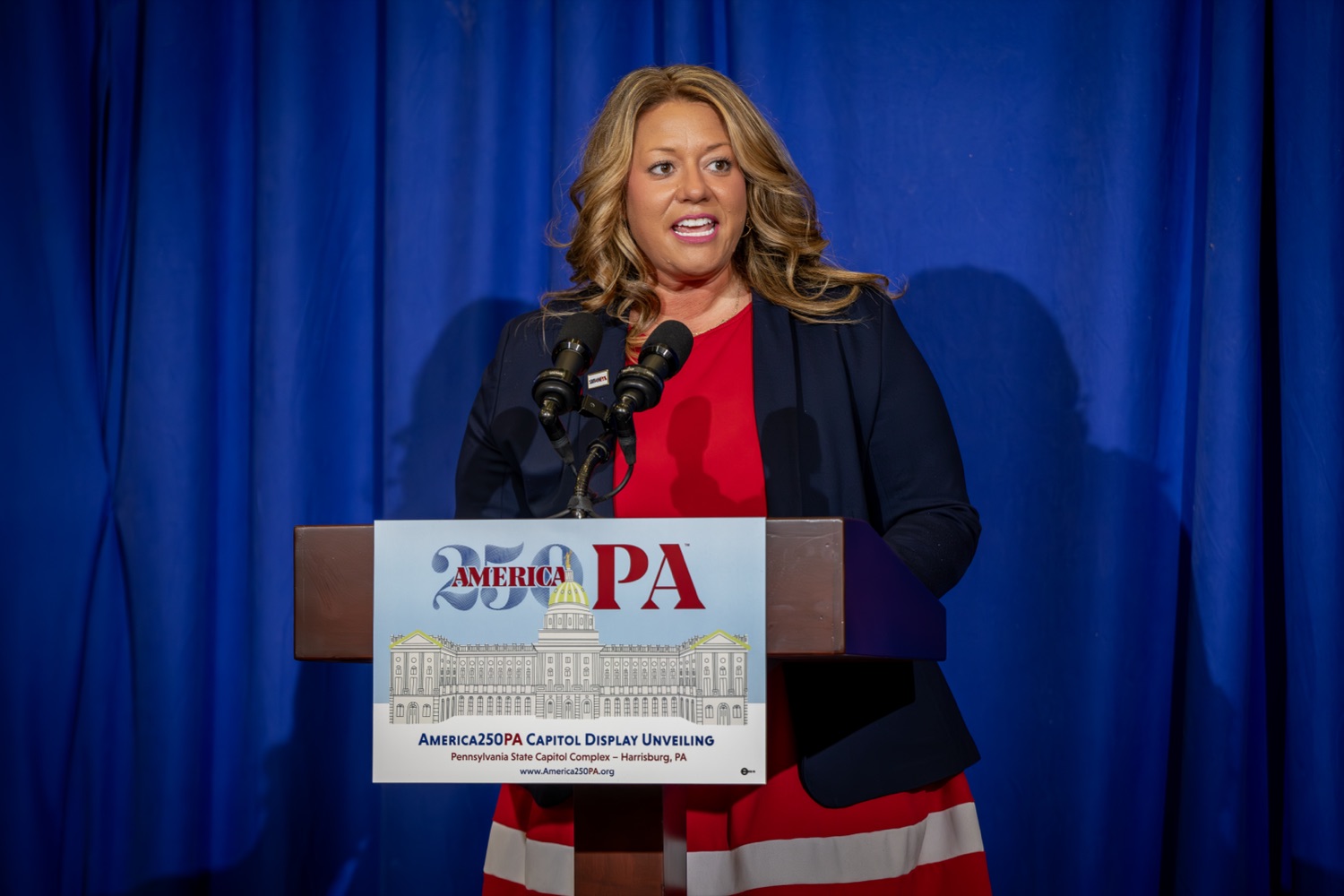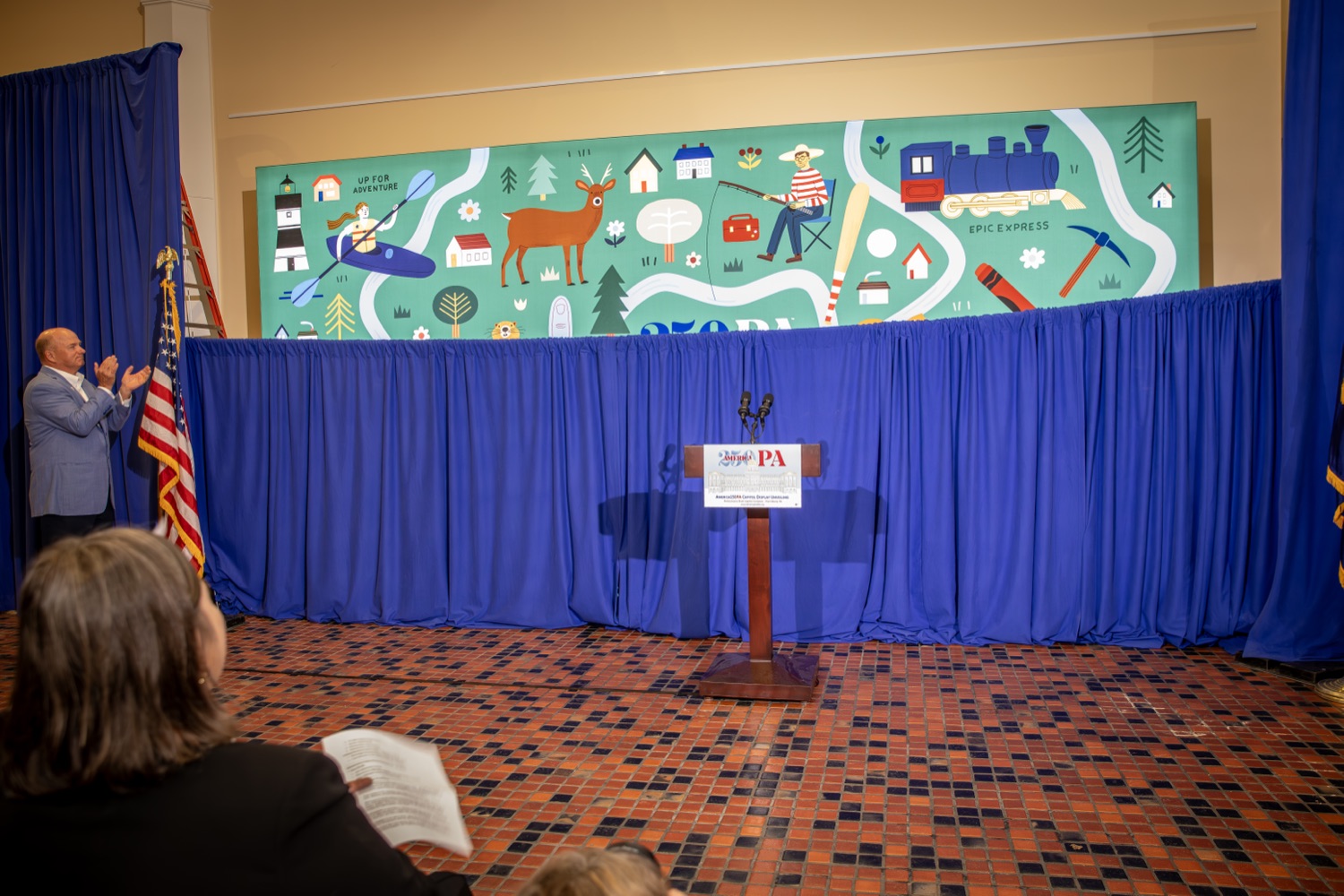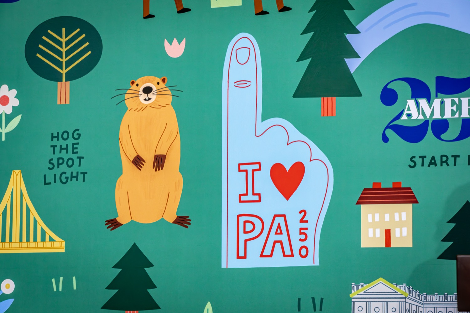 America250PA, in collaboration with the Pennsylvania Department of Community and Economic Development (DCED) and the Pennsylvania Department of General Services (DGS), proudly unveiled a new, large-scale installation at thePennsylvania State Capitol.Designed by Philadelphia-based illustrator Molly Egan, the 12x20-foot illuminated display celebrates Pennsylvania's deep historical roots, diverse culture, and continued influence in shaping the nation. The installation showcases iconic imagery that reflects the Commonwealth's identity and lasting impact on American history, serving as an engaging focal point for visitors to the Capitol."It's hard to believe we started this journey seven years ago. Now, here we are in Harrisburg,surrounded by friends from across the Commonwealth, unveiling this beautiful display," said America250PA Chairman Patrick Burns. "Seeing it come together gives me great confidence in what our team at America250PA-and our partners in all 67 counties-will accomplish between now and the end of 2026."List of Speakers:America250PA Chairman Patrick BurnsAmerica250PA Executive Director Cassandra ColemanFormer Governor Mark SchweikerPADCED Deputy Secretary of Tourism Anne RyanPAAuditor General Tim DeFoorPAState Treasurer Stacy GarritySenator Greg RothmanRepresentative Jared SolomonRepresentative Valerie Gaydos