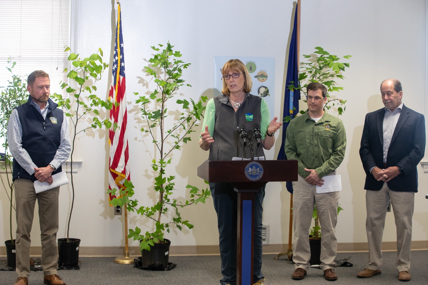 Pennsylvania Department of Conservation and Natural Resources (DCNR) Secretary Cindy Adams Dunn joined officials from across the Shapiro Administration to spotlight efforts to combat invasive species and restore native ecosystems during the Invasive Replace-ive event hosted by the Governor's Invasive Species Council at the Cumberland County Conservation District.The event brought together leaders from DCNR, Department of Agriculture (PDA), Pennsylvania Game Commission (PGC), and Pennsylvania Fish and Boat Commission (PFBC) to highlight how replacing invasive plants with native species helps restore habitat, protect wildlife, and promote biodiversity. Participants received native plants to support restoration efforts in their own landscapes - part of a series of five Invasive Replace-ive events held across the Commonwealth this spring, all of which quickly reached capacity.These events reflect Governor Shapiro's commitment to protecting Pennsylvania's natural resources, engaging communities, and fostering healthier ecosystems across the state.Speakers Include:Department of Agriculture - Deputy Secretary Fred Strathmeyer Jr.Department of Conservation and Natural Resources - Secretary Cindy Adams DunnPennsylvania Fish & Boat Commission Executive Director - Timothy SchaefferPennsylvania Game Commission Director of the Bureau of Wildlife Habitat Management - Timothy Haydt