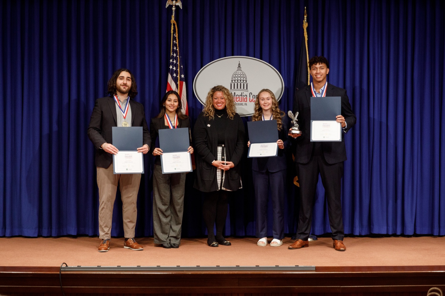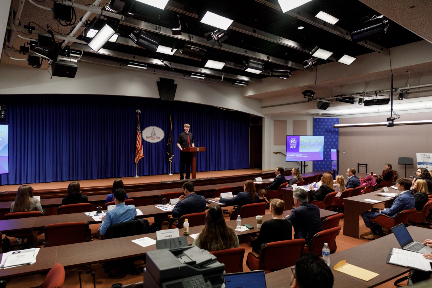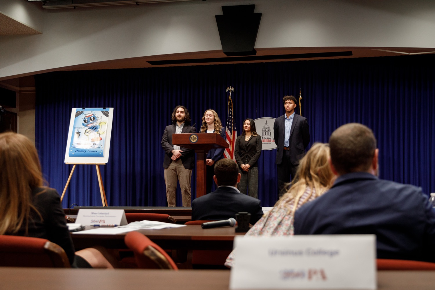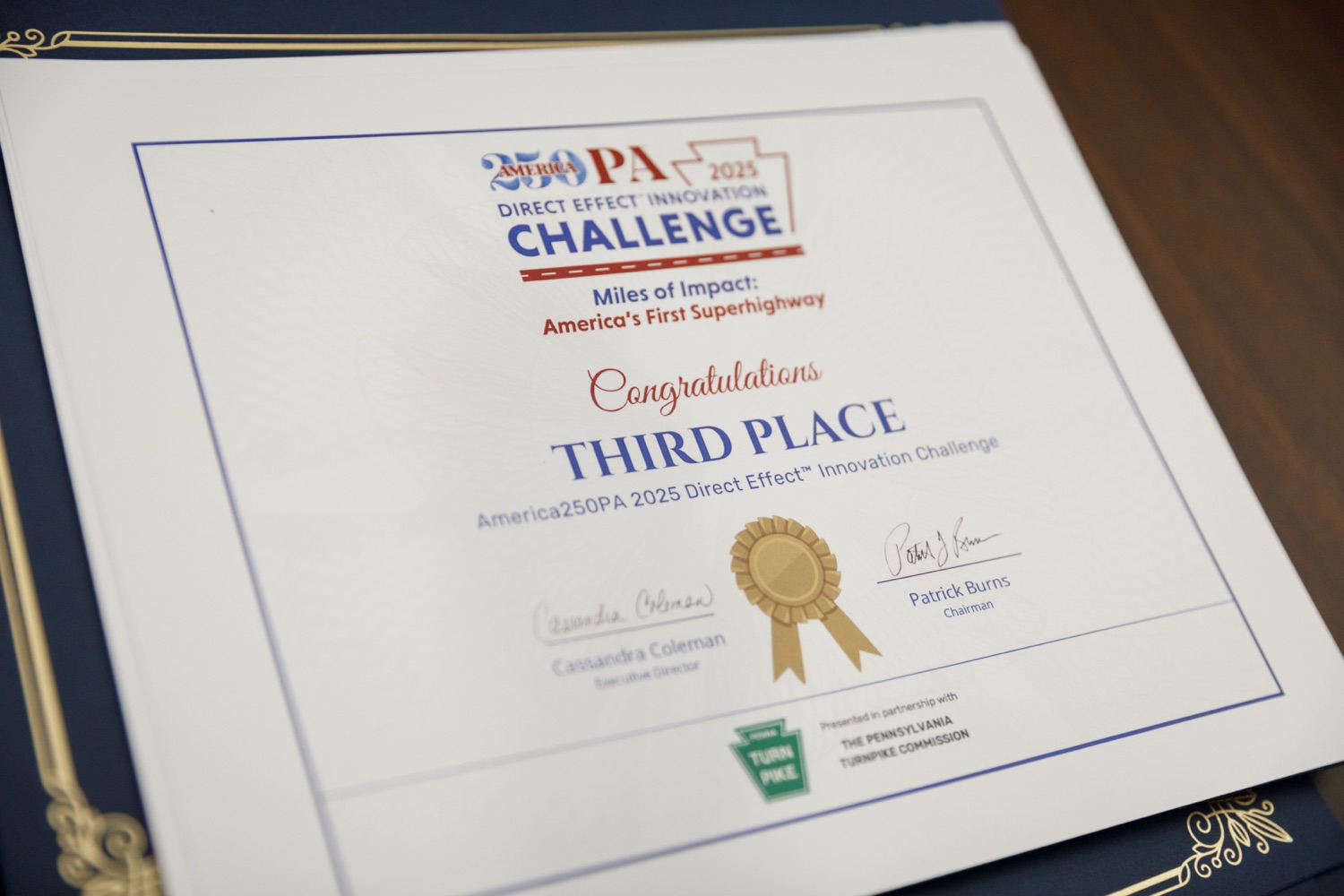 America250PA announces Ursinus College as the winner of its seventh annual 2025 Direct Effect™ Innovation Challenge (DEIC), a multi-round competition that challenges students from postsecondary institutions across the Commonwealth to design and develop integrated marketing campaigns that explore solutions to real-life challenges and questions. Ursinus College competed against four other postsecondary institutions-Rosemont College, Westmoreland County Community College, Penn State Altoona and Cairn University-and received the highest score from a judging panel of industry professionals.The 2025 DEIC consisted of three rounds: a campus round, a virtual second round, and today's in-person final round at the Pennsylvania State Capitol Complex in Harrisburg, PA. This year's theme-"Miles of Impact: America's First Superhighway"-challenged students to design and pitch original integrated marketing campaigns that bring the Pennsylvania Turnpike's story to life - showcasing its historic impact, highlighting its role in shaping mobility and commerce, and inspiring the next generation of travelers to see the PA Turnpike as a journey of innovation and connection.Today's event featured remarks from Cassandra Coleman, America250PA Executive Director; Bri Farrand, America250PA Director of Branding & Design and former DEIC participant; Sheri Herbst, Chief Administrative Officer, Pennsylvania Turnpike Commission; and Michael Coran, Attorney at Klehr Harrison Harvey Branzburg LLP and America250PA Commissioner and Education Subcommittee Chair."The Direct Effect™ Innovation Challenge reflects the promise of Pennsylvania's next generation-their talent, teamwork, and pride in this Commonwealth," said Cassandra Coleman, Executive Director of America250PA. "Working with the Pennsylvania Turnpike Commission gives them the chance to develop creative solutions that shape Pennsylvania's future."