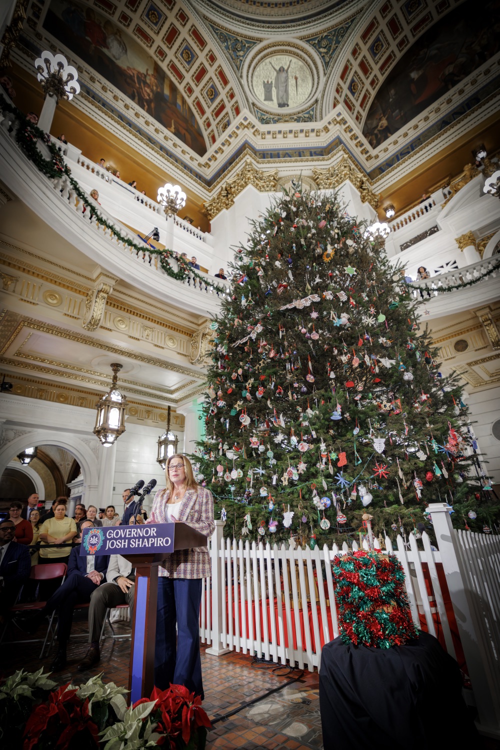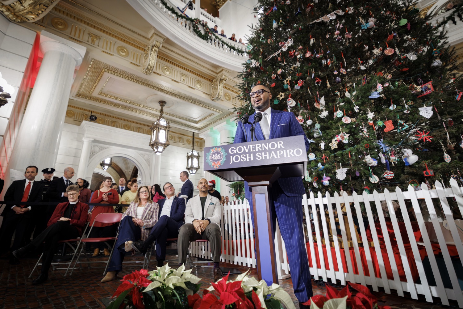 Governor Josh Shapiro, First Lady Lori Shapiro, Lieutenant Governor Austin Davis, andDepartment of General Services Secretary Reggie McNeil kicked off the holiday season at the Capitol in Harrisburg with the 2025 Annual Tree Lighting Ceremony. Surrounded by the glow of the Capitol and scenes inspired by classic Christmas artistry, attendees experienced a celebration where history, craft, and community came together in a way that truly stands the test of time. "The holiday season represents the best of our Commonwealth - communities coming together, supporting each other, and appreciating all that we have here in Pennsylvania," said Governor Shapiro. "The light that comes from the Capitol Christmas tree reminds us of the hope we share and the brighter future we're building together - that spirit and sense of shared purpose are what the holidays are all about. It's what carries us through the good times and the dark times, and it's what makes Pennsylvania such a special place to call home. I hope this season brings every family moments of grace, of gratitude, and of joy. From our family to yours, a Merry Christmas, Happy Holidays, and a wonderful New Year."Speakers Include:DGS Secretary Reggie McNeilReverand Anjel ScarboroughFirst Lady Lori Shapiro Lieutenant Governor Austin DavisGovernor Josh Shapiro
