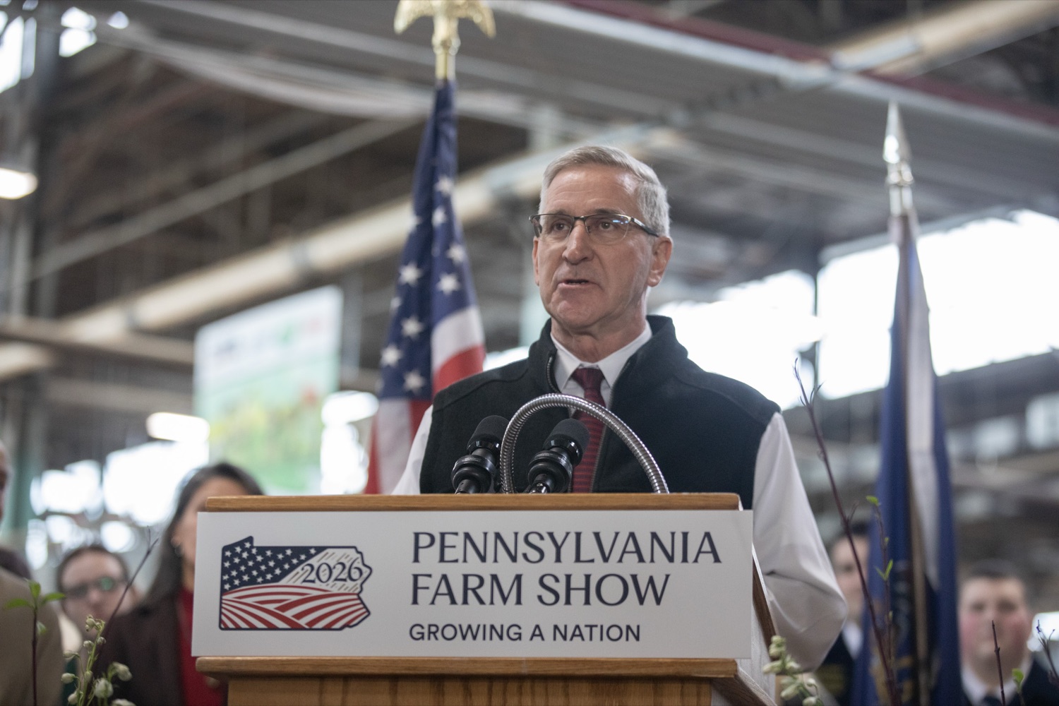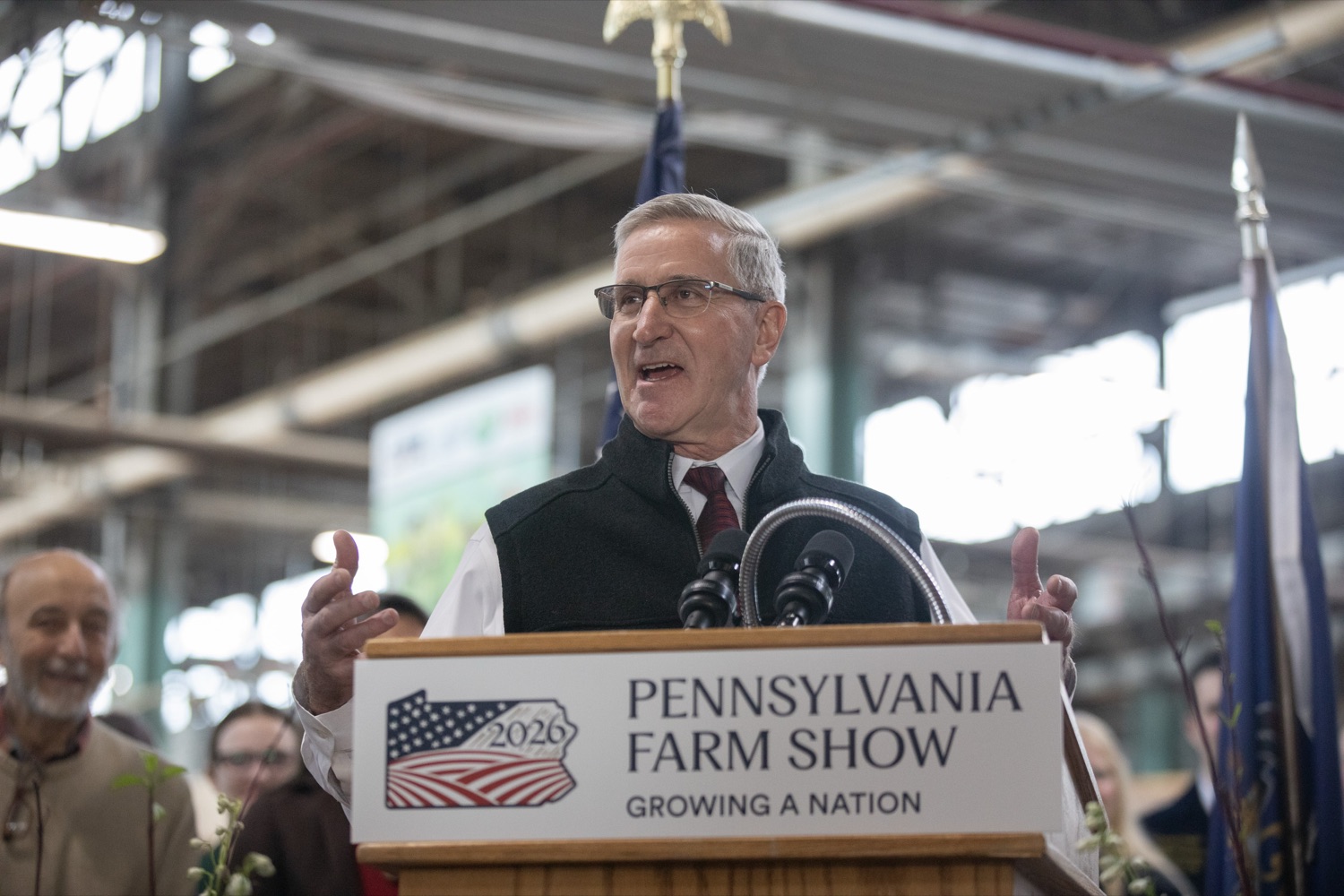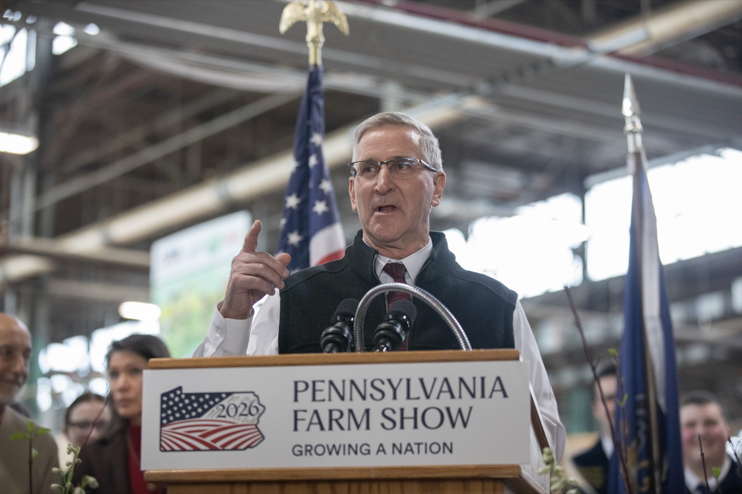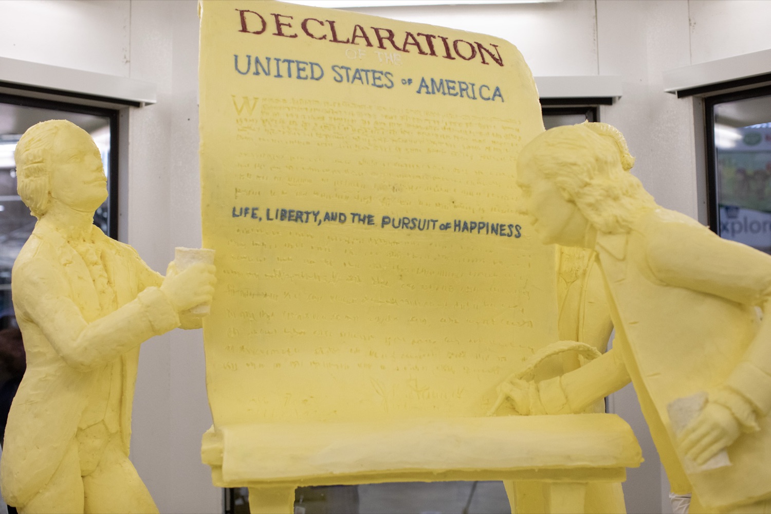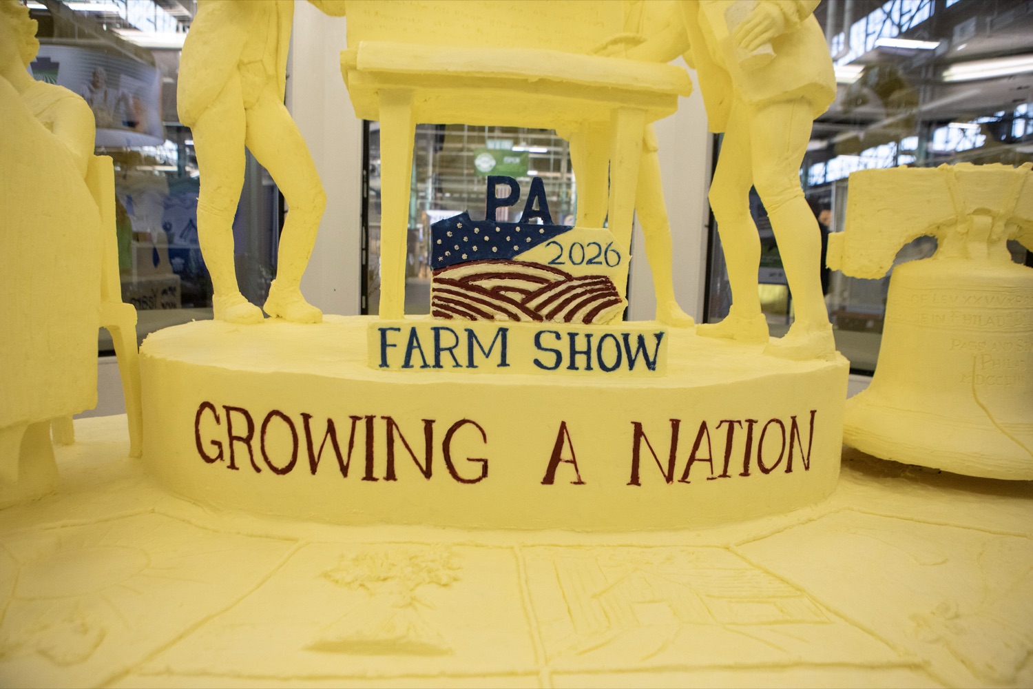 Agriculture Secretary Russell Redding unveiled the 2026 Pennsylvania Farm Show Butter Sculpture, a 1,000-pound sculpture that illustrates how defining moments in U.S. history and the evolution of agriculture have grown side by side to shape our nation. This year’s sculpture is titled, "A Toast to Our Nation’s 250th Anniversary: Inspired by Founders. Grown by Farmers." The Pennsylvania Department of Agriculture, American Dairy Association North East, and the Pennsylvania Dairy Promotion Program sponsored the sculpture. “The butter sculpture is a people-pleasing favorite every year at the Pennsylvania Farm Show,” Secretary Redding said. “In this America250 year, it takes on a deeper meaning reflecting how agriculture has been the roots of our nation’s growth and prosperity for 250 years, and how Pennsylvania farmers will continue to lead us forward.” Pennsylvania dairy farmer Carolyn Eaglehouse from Milky Way Farm in Chester Springs and a host of dairy industry leaders joined Secretary Redding to unveil the sculpture. Created for America’s 250th anniversary, this year’s butter sculpture honors Pennsylvania’s pivotal role in the nation’s founding and the growth of American agriculture and our nation’s economy. Set in 1776 Philadelphia, the sculpture depicts Benjamin Franklin and the Founding Fathers at the signing of the Declaration of Independence, complete with a celebratory toast with milk. Patriotic elements, including the Liberty Bell, a tribute to Betsy Ross, and red, white, and blue accents underscore the spirit of the semi-quincentennial. At the same time, the base highlights Pennsylvania’s enduring agricultural heritage. List of Speakers: Diana Dibble, Vice President, Consumer Communications at American Dairy Association North East Carolyn Matthews Eaglehouse, Milky Way Farm in Chester Springs Jim Victor and Marie Pelton, Butter Sculpture creators Cassandra Coleman, PA America250 Secretary of Agriculture Russell Redding