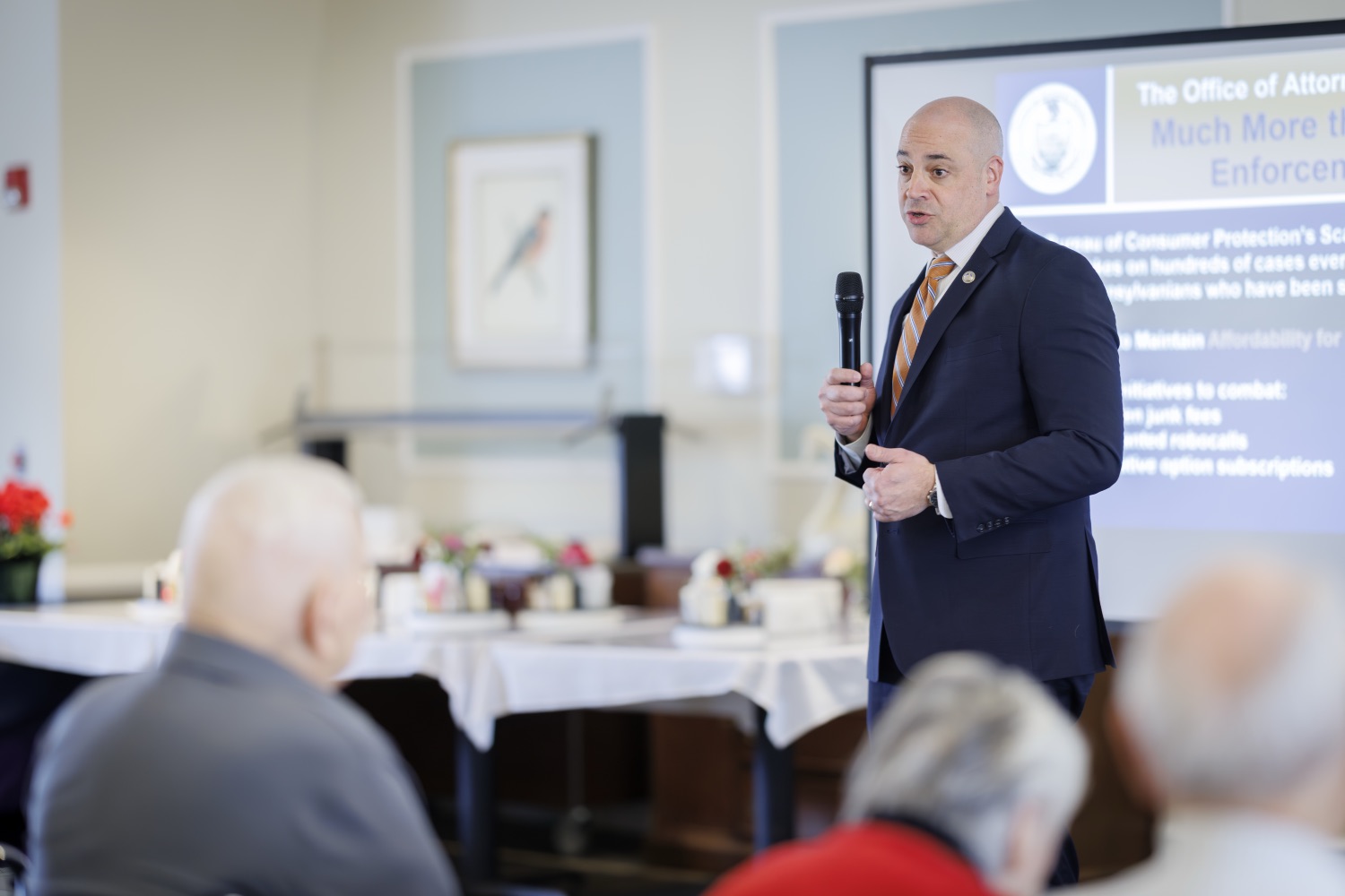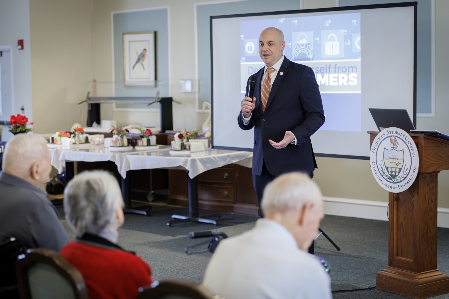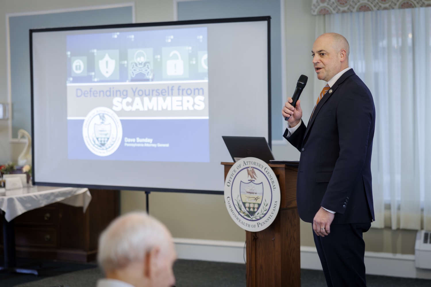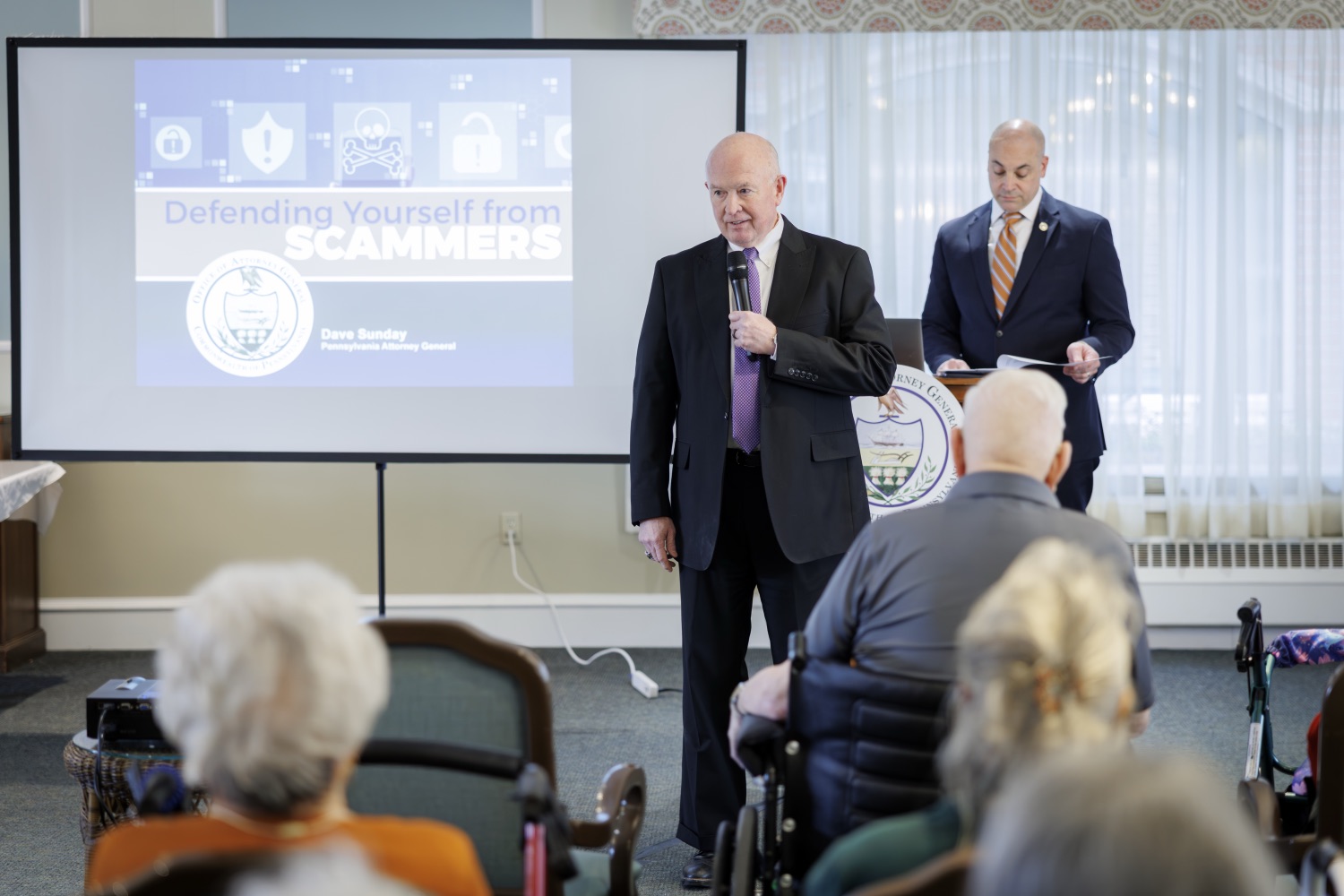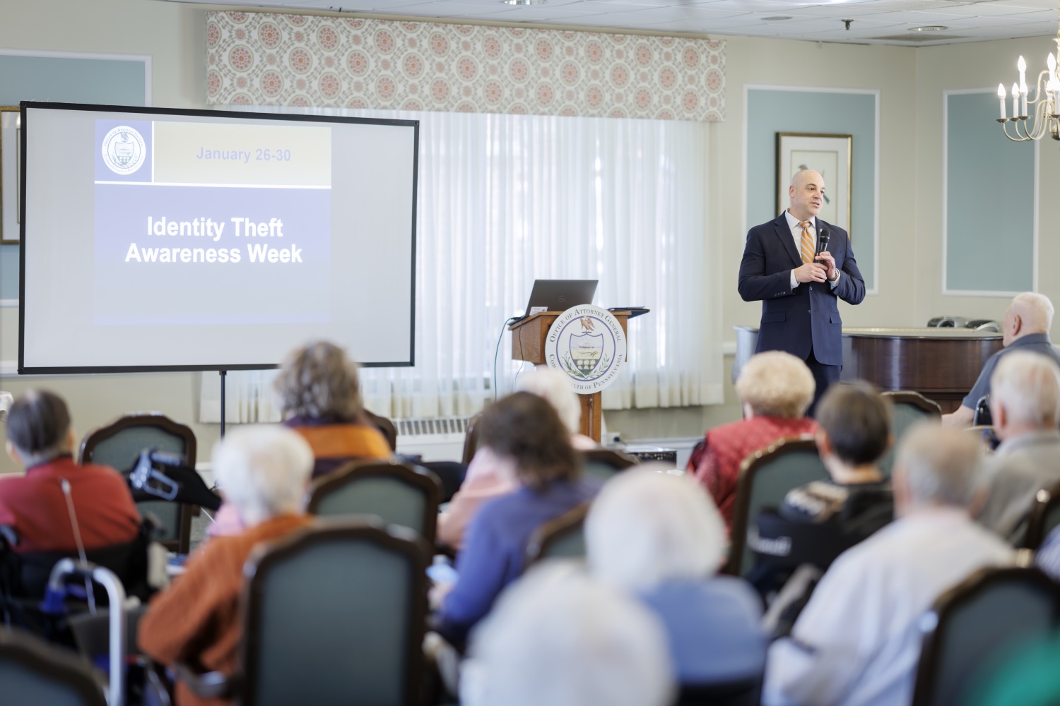 Attorney General Dave Sunday joined AARP in marking Identity Theft Awareness Week with a presentation to older Pennsylvanians who are often targeted in scams. Attorney General Sunday provided information about the 2025 year in scams, including most common scam types, how many scams were reported, and how much money was lost. Attorney General Sunday, AARP, and Director Shallcross advised the audience on how they can defend themselves from identity thieves.Speaker List:Barry Ramper II, President and CEO, Homeland CenterAttorney General Dave SundayDavid Shallcross, Director of Senior Protection Unit Education, Office of Attorney General