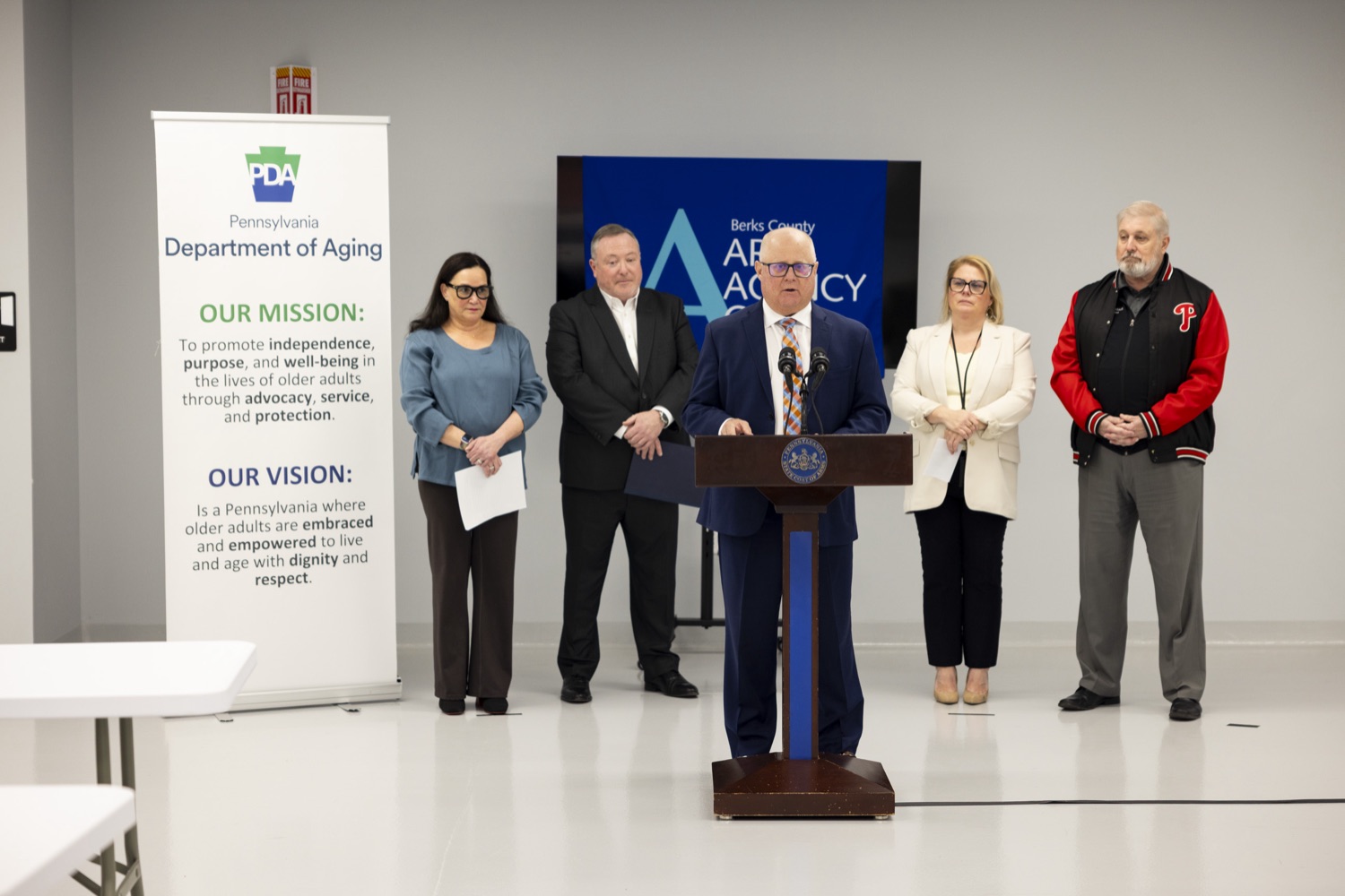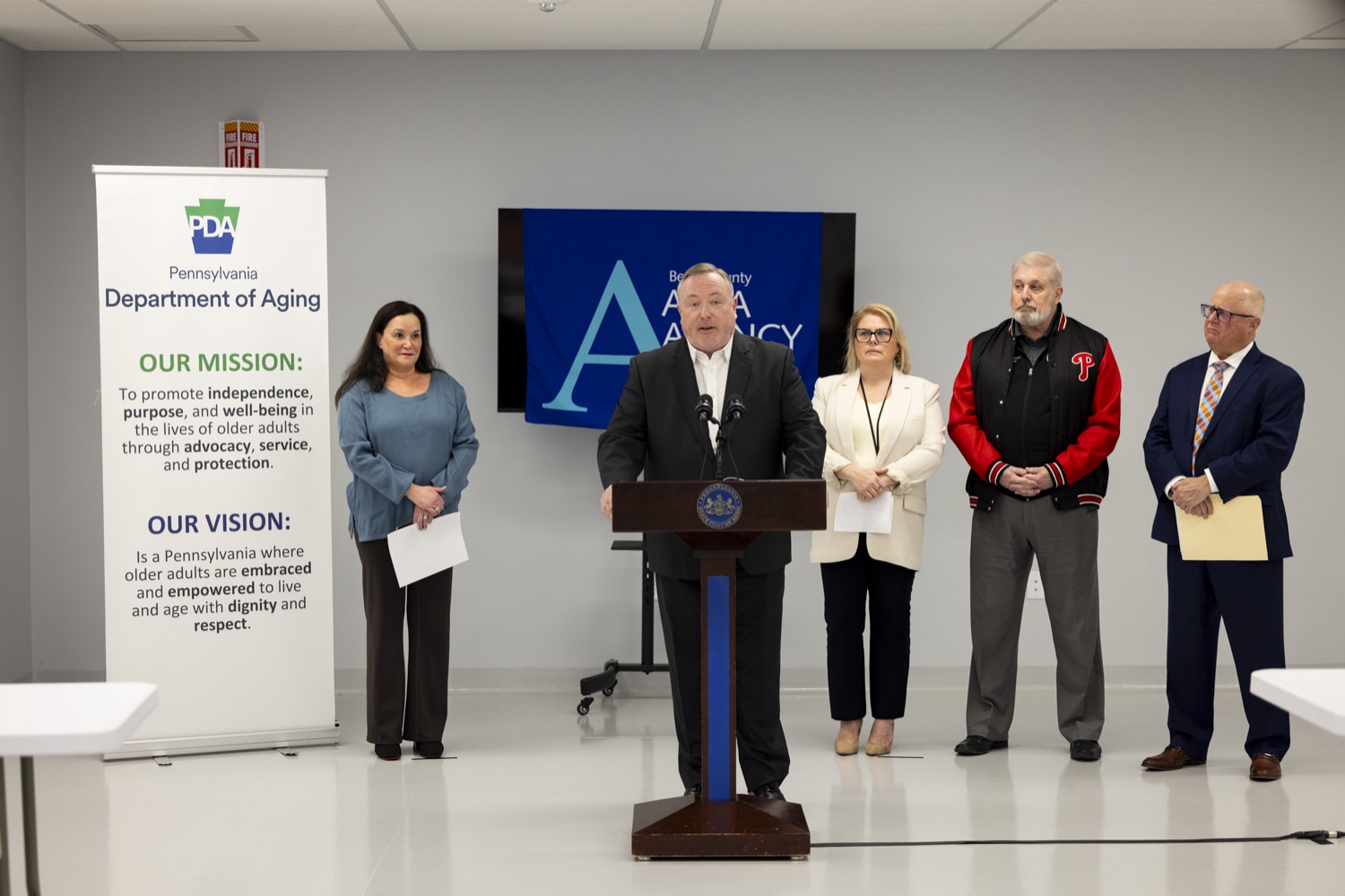 Pennsylvania Department of Aging Secretary Jason Kavulich touts how regional teams created under the Shapiro Administration and backed by the U.S. Department of Justice will help keep older Pennsylvanians safe and protected from abuse.These regional coalitions are called Multidisciplinary Teams (MDTs) and are designed specifically to address complex older adult protective services cases in their respective counties and regions. Secretary Kavulich today visited with leaders from the Berks, Lancaster, and Lehigh County Area Agencies on Aging (AAAs) to see how their teams are benefitting from individualized, tailored support from outside experts and the Department.The AAAs joining the Secretary today were among the first in Pennsylvania to receive this customized support and guidance."We are doing groundbreaking collaborative work at the state level to ensure the protection of older adults at the community level," said Secretary Kavulich. "One of our Administration's priorities is to continuously advance and modernize our practices while supporting the AAAs, District Attorney's Offices, and our community partnersto ensure older adults are cared for and safe in their chosen community. We are deploying national level expertise and proven practical approaches to help AAAs and community partners build teams that are person-centered and able to move quickly to get the right resources for the victim."Speakers in Order:Jason Kavulich - Secretary, PA Dept. of AgingJessica Jones - Director, Berks County Office of AgingChristian Leinbach - Berks County CommissionerJohn Adams - Berks County District AttorneyLisa Rachmuth - Program Administrator, Weill Cornell Medicine