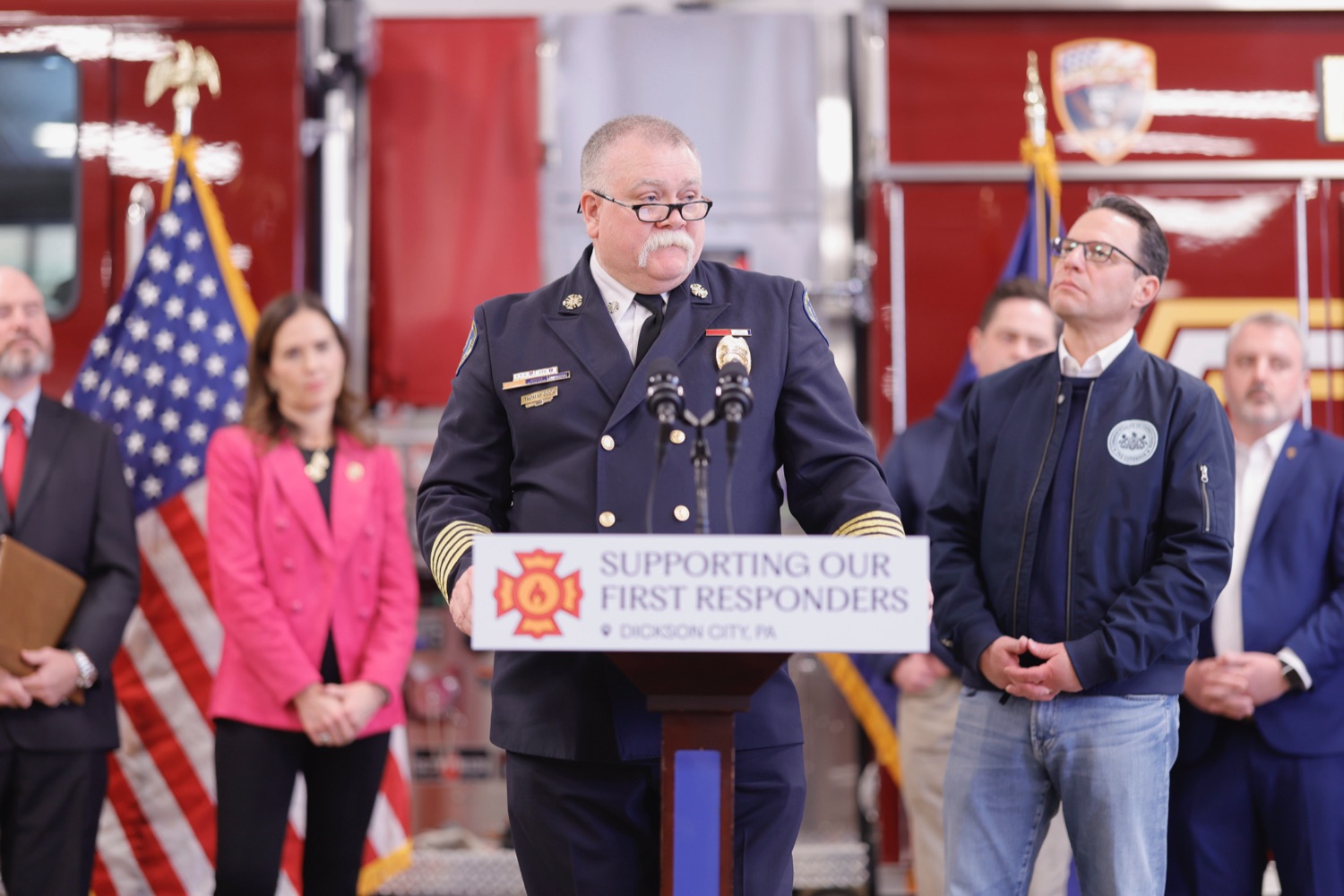 Governor Josh Shapiro and Pennsylvania State Fire Commissioner Thomas Cook visited the Dickson City Fire Department, also known as the Eagle Hose Company No. 1, to thank first responders for their heroic efforts to respond to the Lehigh Valley Hospital fire last week and to highlight how the Governor's 2026-27 proposed budget continues to deliver for firefighters and first responders.Pennsylvania's career and volunteer firefighters put themselves in harm's way to protect communities across the Commonwealth, and Governor Shapiro has been a strong advocate for increasing state support for fire departments. That's why, for the second year in a row, the Governor's 2026-27 proposed budget includes a new $30 million investment - nearly doubling annual funding for fire departments - in competitive grants.These grants will provide critical financial support to both volunteer and career fire departments statewide by funding major equipment purchases, training, facility improvements, debt reduction, and other essential operational expenses - ensuring Pennsylvanians in every community are protected."Every single day, firefighters across Pennsylvania run towards danger to keep people safe from harm. We owe it to these Pennsylvania heroes to have their backs and stand by them," said Governor Shapiro. "While the Commonwealth already provides funding for fire companies, the current system doesn't allow departments to make major investments - these competitive grants would change that. Public safety is at the heart of our work as elected leaders, and when our communities are safe, we build a strong foundation for growth across Pennsylvania."Speaker List:Governor Josh ShapiroCommissioner Thomas Cook, PA Office of the State Fire CommissionerChief Richard Chowanec, Fire Chief, Dickson City Fire DepartmentMayor Robert MacCallum, Dickson CitySenator Marty Flynn, PA's 22nd Senatorial DistrictRepresentative Bridget M. Kosierowski, PA's 114th House District