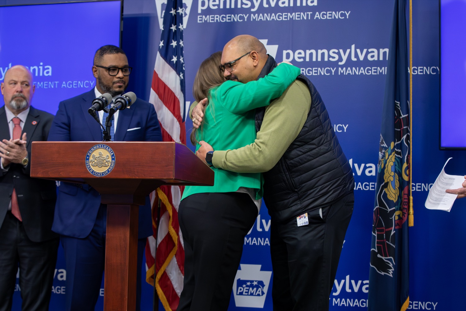 Lt. Governor Austin Davis, Pennsylvania Emergency Management Agency (PEMA) Director Randy Padfield, and State Fire Commissioner Tom Cook highlighted the new law Governor Shapiro signed to strengthen access to mental health care for firefighters, EMTs, paramedics, and state police officers and advocated for Governor Shapiro's budget proposal, which will further expand worker protections for first responders."Pennsylvania's first responders face difficult and often traumatic situations to keep us safe. With Act 121, we made it clear that their mental health matters just as much as their physical health," said Lt. Gov. Austin Davis. "Governor Shapiro and I will continue working to make sure these heroes who answer the call know their Commonwealth stands behind them, and we will always be grateful for the lifesaving work they do."Speakers included:Lt. Governor Austin DavisPA State Fire Commissioner Tom CookPA Professional Fire Fighters Association President Bob BrooksState Representative Jennifer O'MaraState Representative Justin FlemingPA Emergency Management Agency Director Randy Padfield