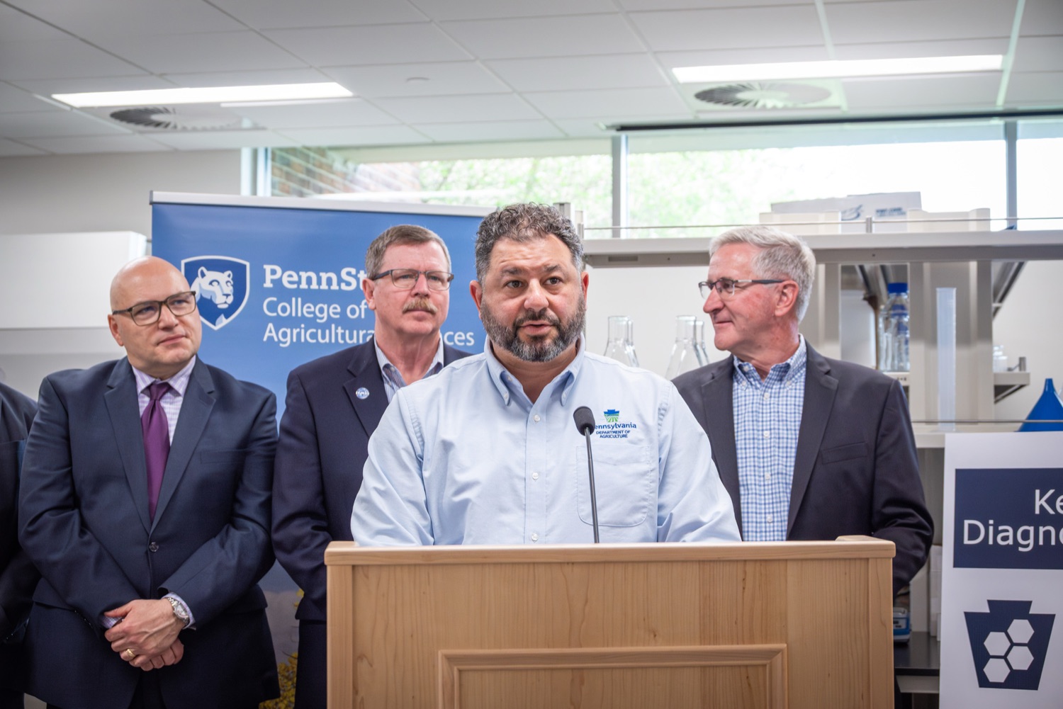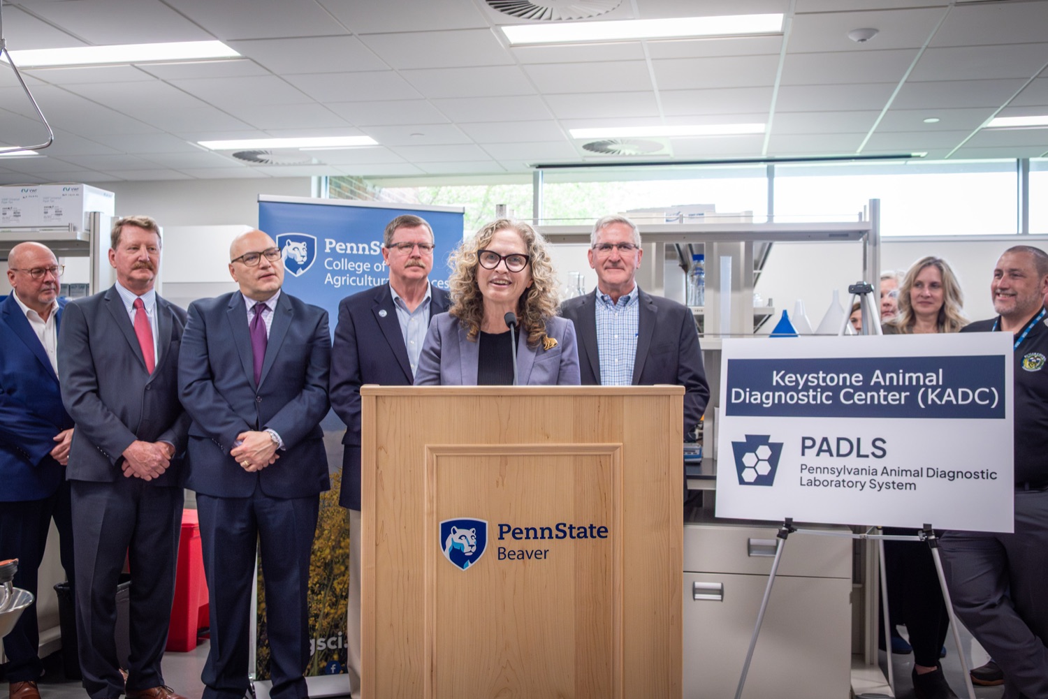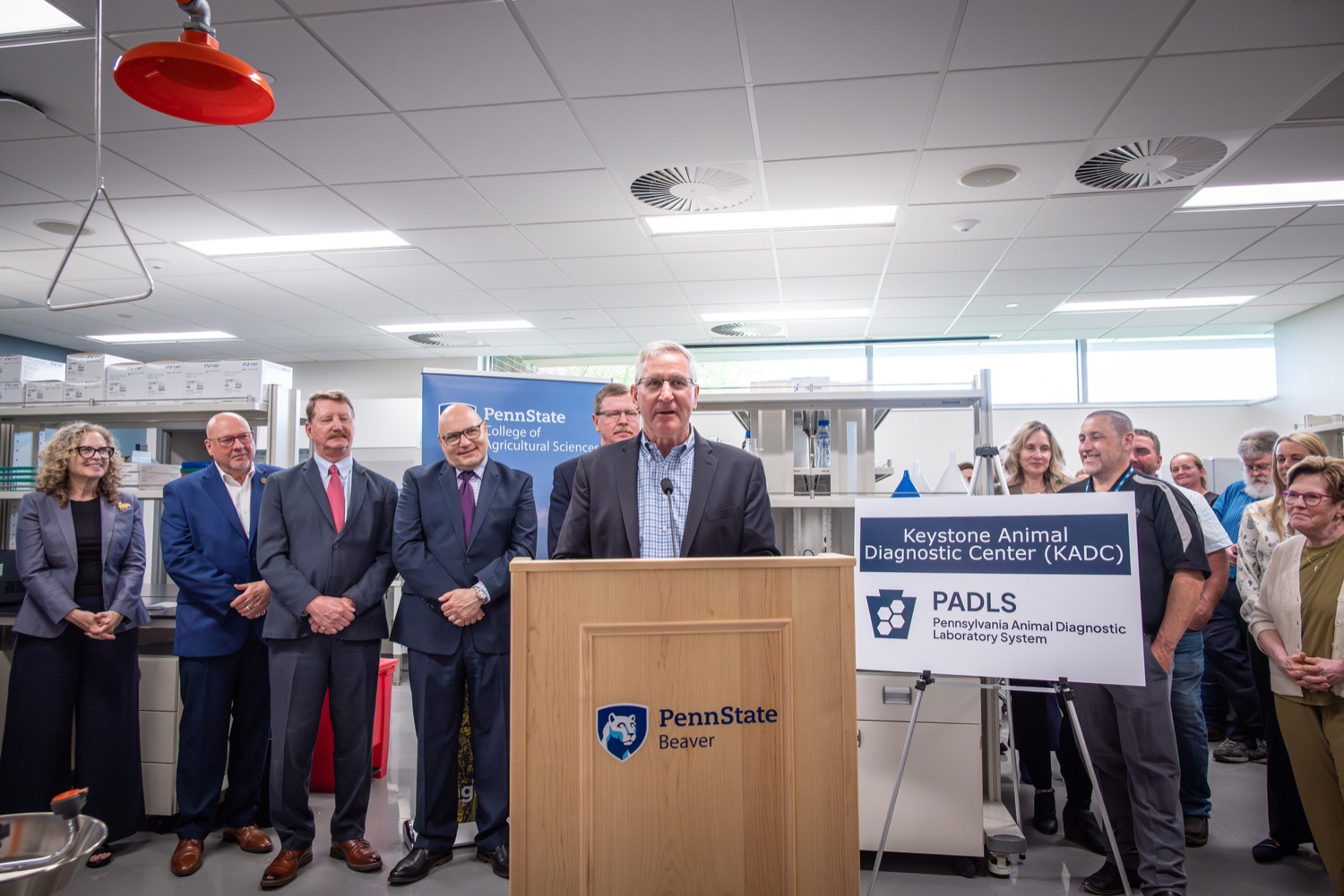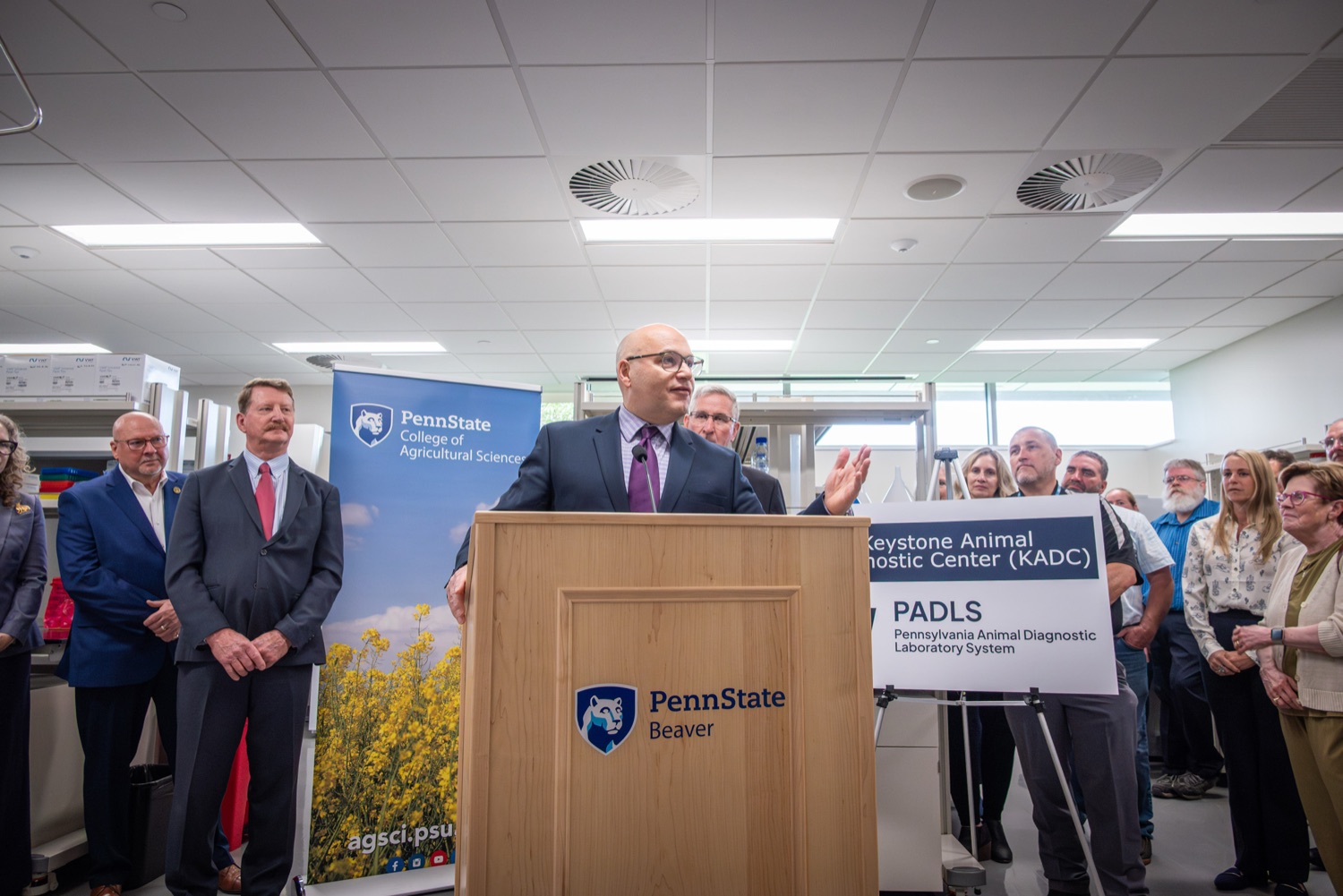 Agriculture Secretary Russell Redding and Penn State University's College of Agricultural Sciences Dean Dr. Troy Ott marked a milestone for Pennsylvania farmers, cutting the ribbon to open the Keystone Animal Diagnostic Center at Penn State University's Beaver Campus. Funded by a $6 million investment from Governor Josh Shapiro's bipartisan 2024-25 budget, the lab expands Pennsylvania's capacity to respond to animal disease outbreaks, speeding diagnoses for farmers in the western part of the state, lowering their business costs, and helping protect their animals and investments."This is a historic moment for Pennsylvania agriculture," Secretary Redding said. "Adding a fourth vet lab on a campus that is part of our top-notch Land Grant University continues that tradition of excellence, strengthens our crisis response capacity and supports current regional growth in animal agriculture. This expansion is more proof that investments by the Shapiro Administration are feeding Pennsylvania's economic future and protecting our rich agricultural heritage." Participants Include:Dr. Alex HambergSecretary Russell ReddingDean Dr. Troy Ott