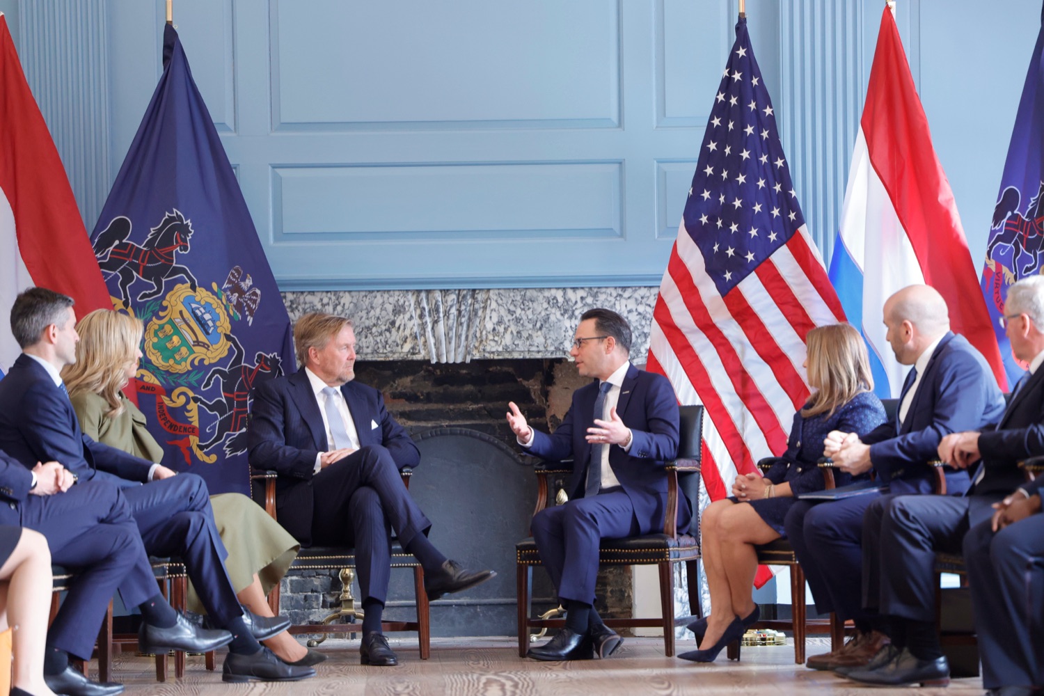 Governor Josh Shapiro and First Lady Lori Shapiro welcomed His Majesty King Willem-Alexander and Her Majesty Queen Mxima of the Kingdom of the Netherlands to Philadelphia during their working visit to the United States - touring Independence Hall, visiting the Liberty Bell, and convening a roundtable with the CEOs of Dutch multinational businesses to encourage them to increase investment in Pennsylvania.During their visit, the Governor, First Lady, and Their Majesties highlighted the long-standing relationship between Pennsylvania and the Netherlands, dating back to the Commonwealth's founding in 1681, while underscoring shared economic ties ahead of America's 250th anniversary."We're honored to welcome Their Majesties to the Commonwealth as we celebrate the historic friendship between Pennsylvania and the Netherlands," said Governor Shapiro. "For centuries, our people have benefitted from this productive relationship and my Administration looks forward to strengthening those ties and our shared commitment to economic opportunity and innovation."List of Seakers:Governor Josh Shapiro His Majesty King Willem-Alexander