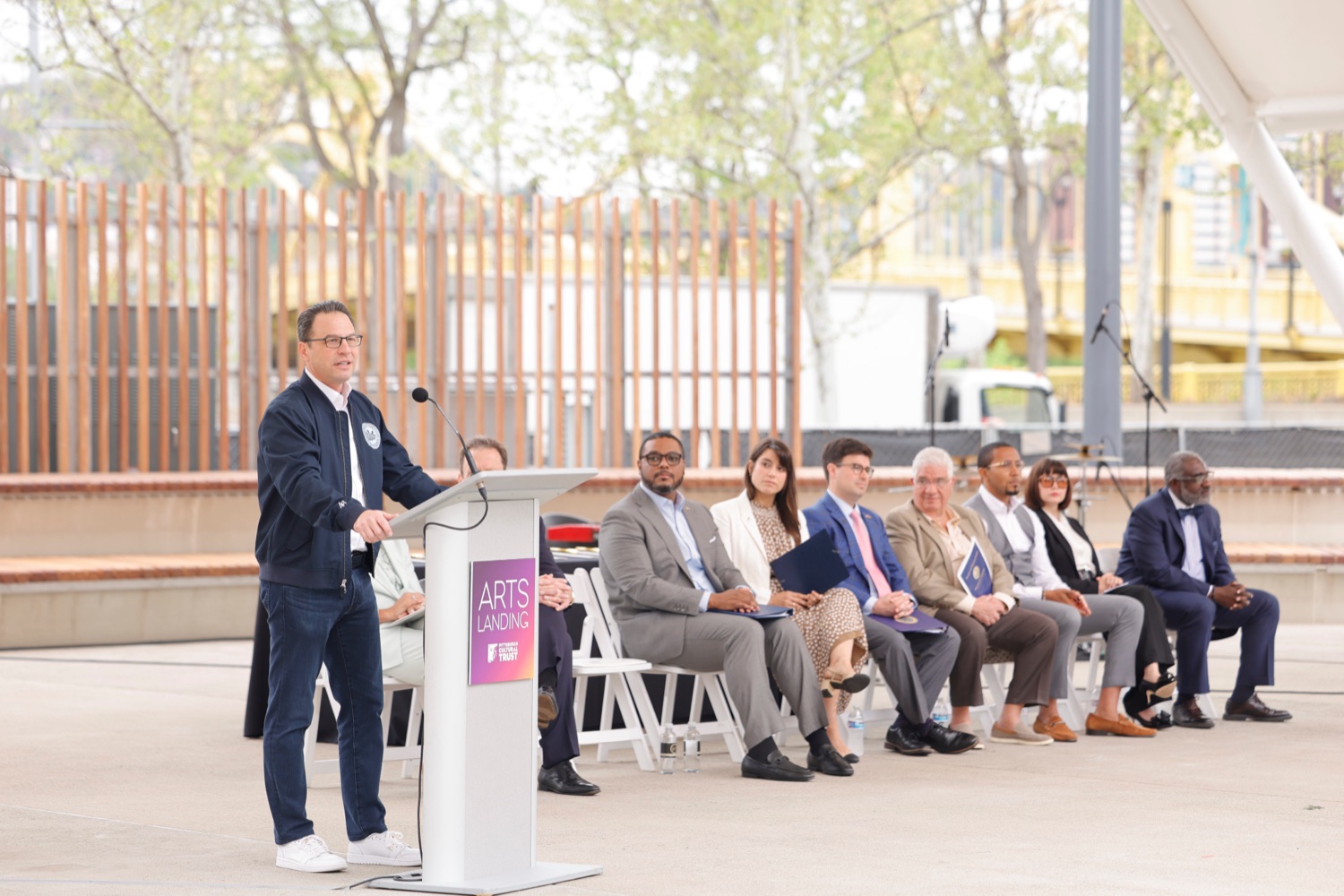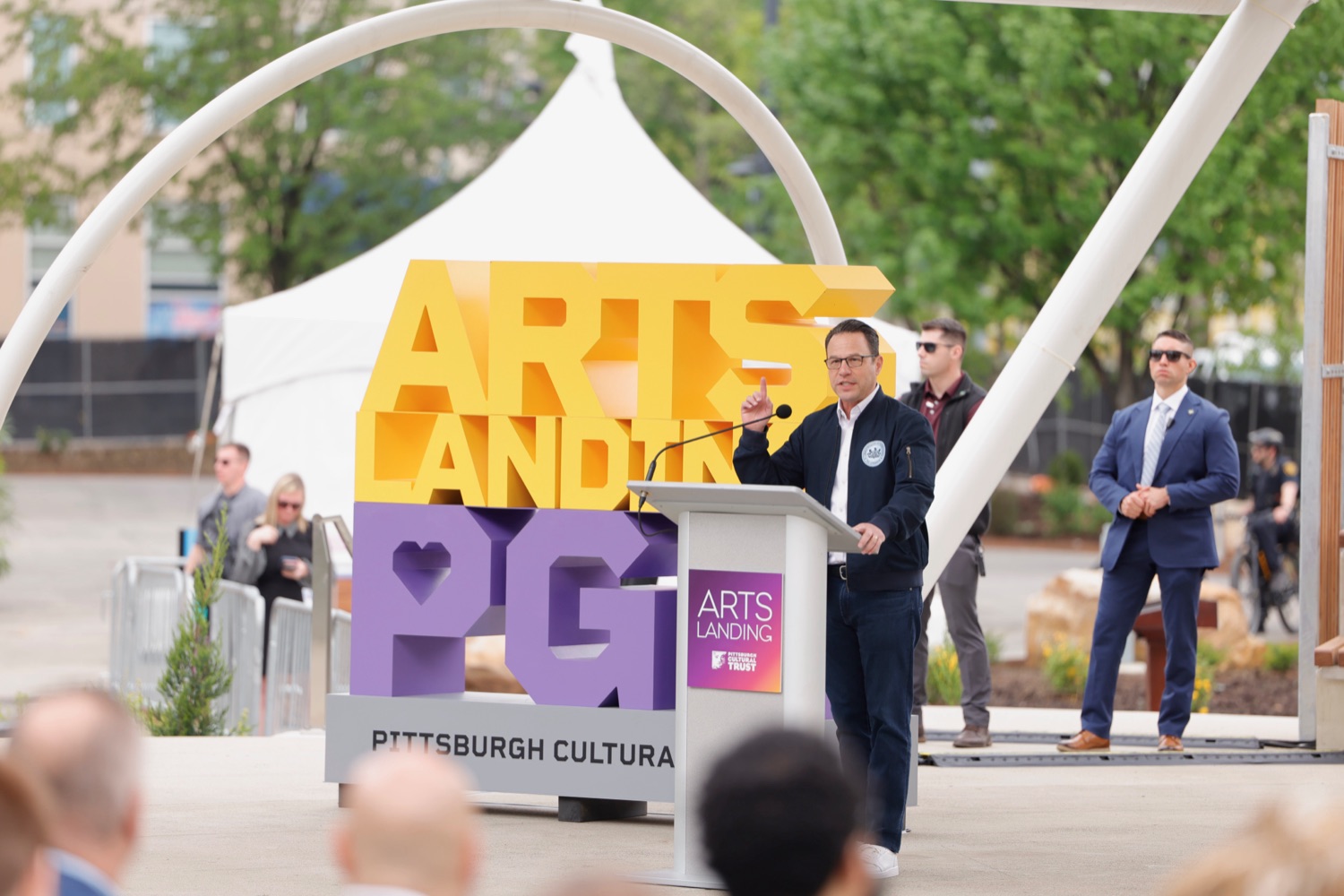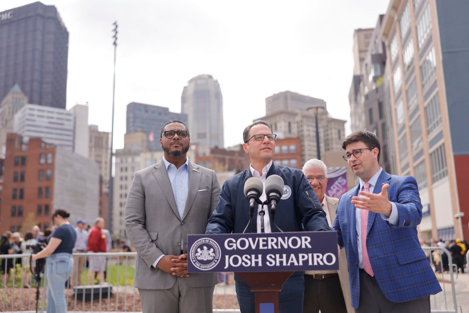 Governor Josh Shapiro participated in the opening of Arts Landing, a new four-acre, $31 million outdoor civic space on the 8th Street block of Downtown Pittsburgh with the Pittsburgh Cultural Trust, and elected and community leaders. Its opening comes as Pittsburgh prepares to host hundreds of thousands of sports fans at Point State Park and across Downtown Pittsburgh for the NFL Draft on April 23 through April 25.The Arts Landing project was one of three major public space improvement projects included in Governor Shapiro's 10-year plan to revitalize Downtown Pittsburgh, uniting the city's private sector, local government, corporate leaders, and nonprofits behind a plan to build more housing, revitalize public spaces, and improve safety, cleanliness, and affordability downtown. Its completion on time, ahead of the NFL Draft, represents a major milestone towards the completion of the Governor's plan."Eighteen months ago, we brought together leaders from the public and private sector to pull together a plan to revitalize Downtown Pittsburgh and turn this neighborhood into a thriving center for innovation, opportunity, and culture. Today, we're delivering on that promise," said Governor Josh Shapiro. "I'm proud of the progress we're already made together, from building new affordable housing to creating safe, fun public spaces like Arts Landing, and completing renovations at Point State Park - and we're not done yet. We'll continue to get stuff done in Downtown Pittsburgh for years to come."Speaker List:Kendra Whitlock Ingram, President & CEO, Pittsburgh Cultural TrustDavid Holmberg, President & CEO, Highmark HealthGovernor Josh ShapiroLt. Governor Austin DavisSara Innamorato, Allegheny County ExecutivePittsburgh Mayor Corey O'ConnorSenator Wayne FontanaRepresentative Aerion AbneyAnastasia James, Piitsburgh Cultural TrustCouncilman Khari Mosley