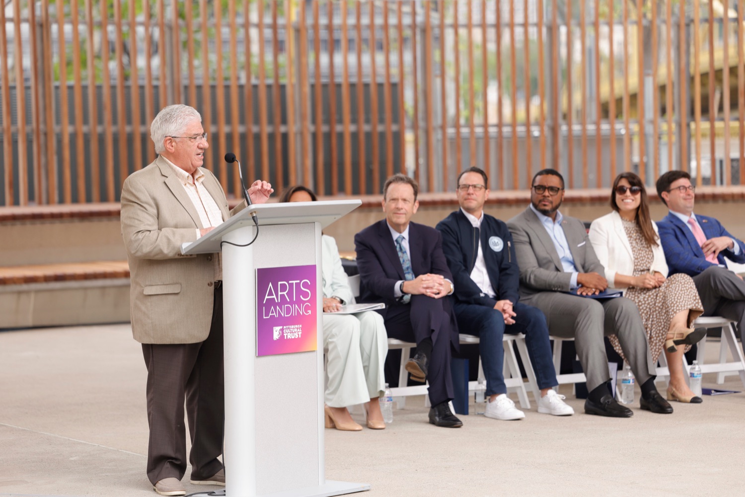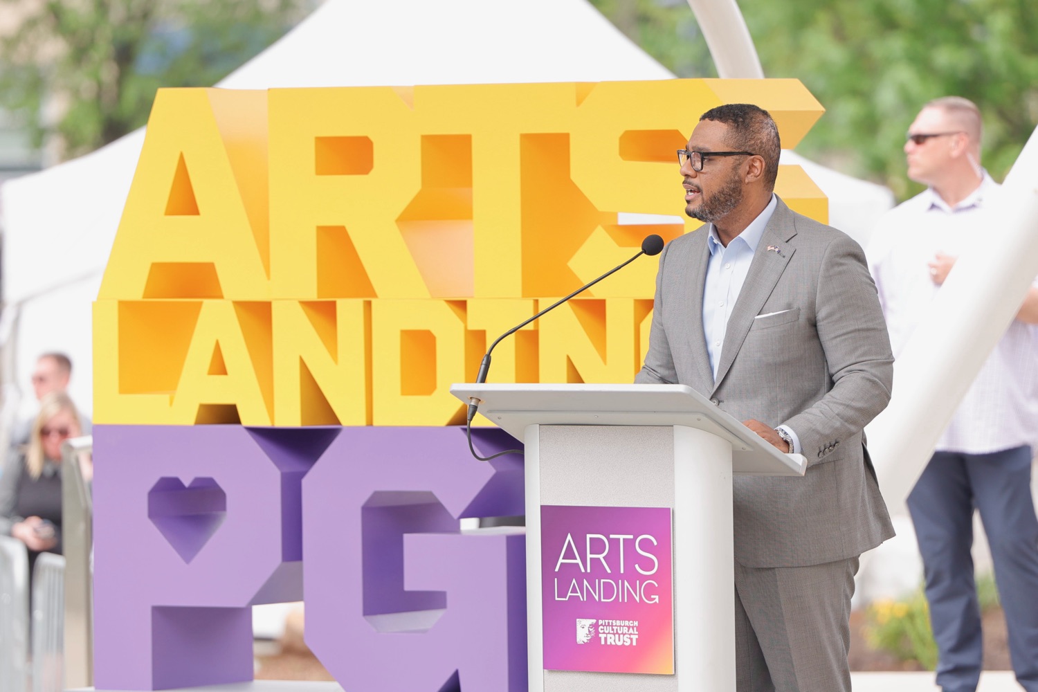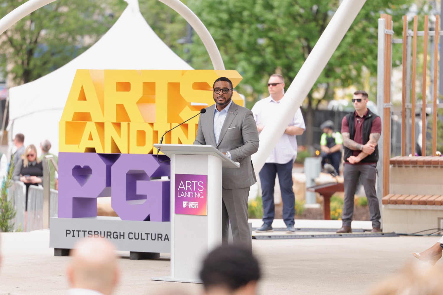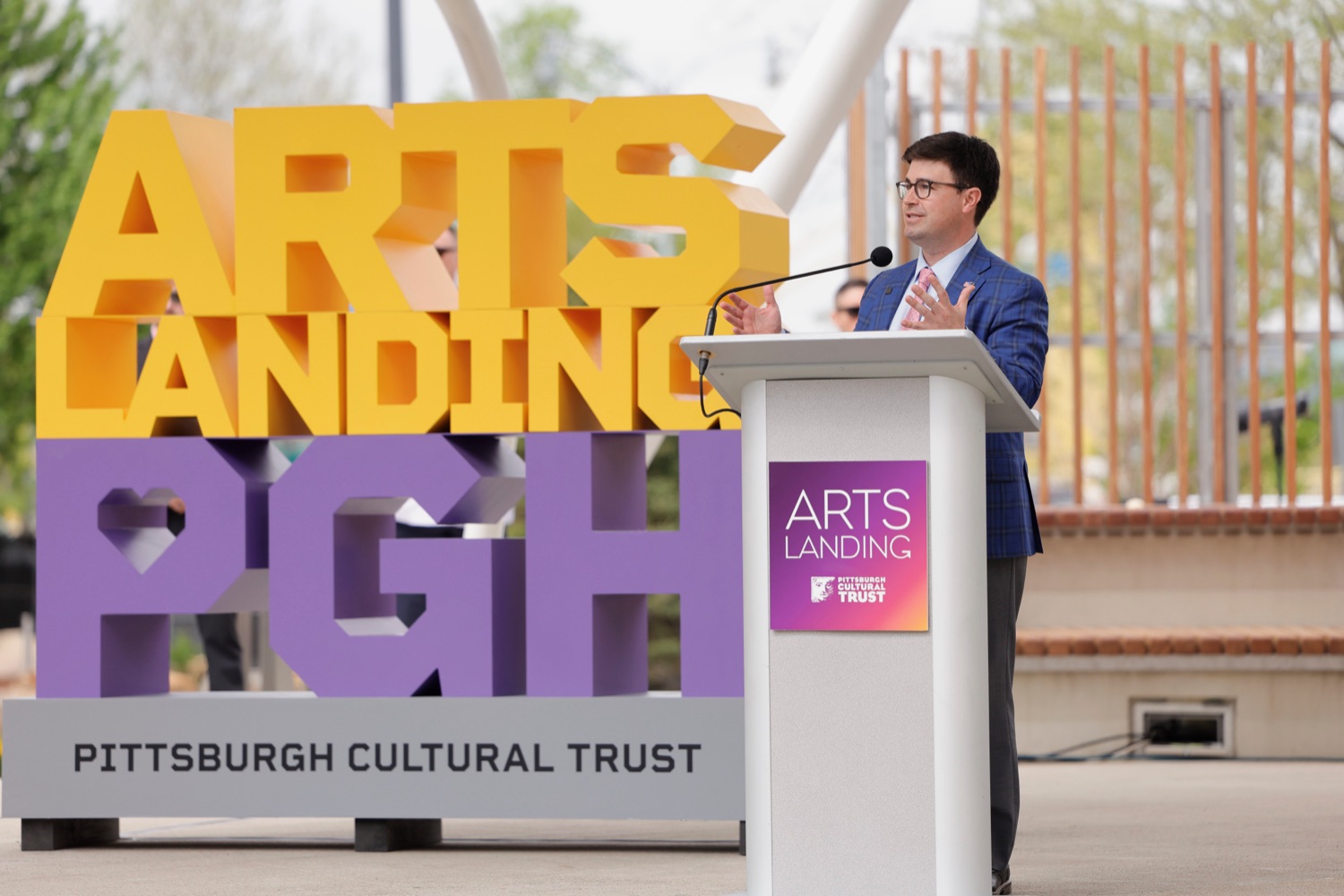 Governor Josh Shapiro participated in the opening of Arts Landing, a new four-acre, $31 million outdoor civic space on the 8th Street block of Downtown Pittsburgh with the Pittsburgh Cultural Trust, and elected and community leaders. Its opening comes as Pittsburgh prepares to host hundreds of thousands of sports fans at Point State Park and across Downtown Pittsburgh for the NFL Draft on April 23 through April 25.The Arts Landing project was one of three major public space improvement projects included in Governor Shapiro's 10-year plan to revitalize Downtown Pittsburgh, uniting the city's private sector, local government, corporate leaders, and nonprofits behind a plan to build more housing, revitalize public spaces, and improve safety, cleanliness, and affordability downtown. Its completion on time, ahead of the NFL Draft, represents a major milestone towards the completion of the Governor's plan."Eighteen months ago, we brought together leaders from the public and private sector to pull together a plan to revitalize Downtown Pittsburgh and turn this neighborhood into a thriving center for innovation, opportunity, and culture. Today, we're delivering on that promise," said Governor Josh Shapiro. "I'm proud of the progress we're already made together, from building new affordable housing to creating safe, fun public spaces like Arts Landing, and completing renovations at Point State Park - and we're not done yet. We'll continue to get stuff done in Downtown Pittsburgh for years to come."Speaker List:Kendra Whitlock Ingram, President & CEO, Pittsburgh Cultural TrustDavid Holmberg, President & CEO, Highmark HealthGovernor Josh ShapiroLt. Governor Austin DavisSara Innamorato, Allegheny County ExecutivePittsburgh Mayor Corey O'ConnorSenator Wayne FontanaRepresentative Aerion AbneyAnastasia James, Piitsburgh Cultural TrustCouncilman Khari Mosley